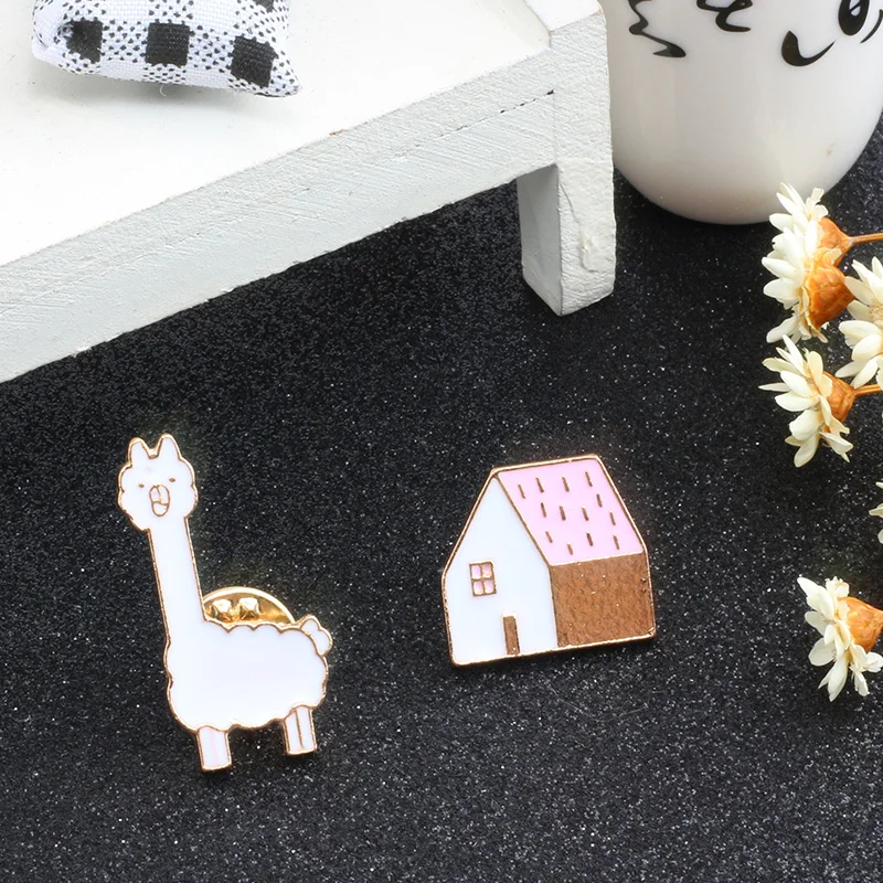 Броши с эмалью в виде дома альпака, ананаса, Мультяшные броши, пальто, куртки, лацкан, значок на рюкзак, женская бижутерия, подарки для детей