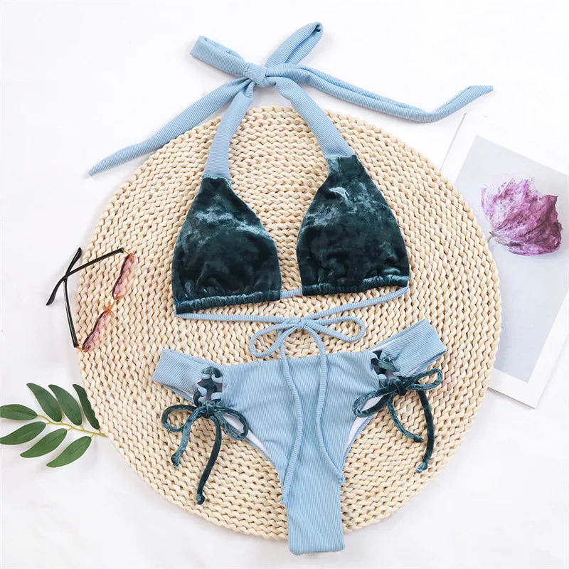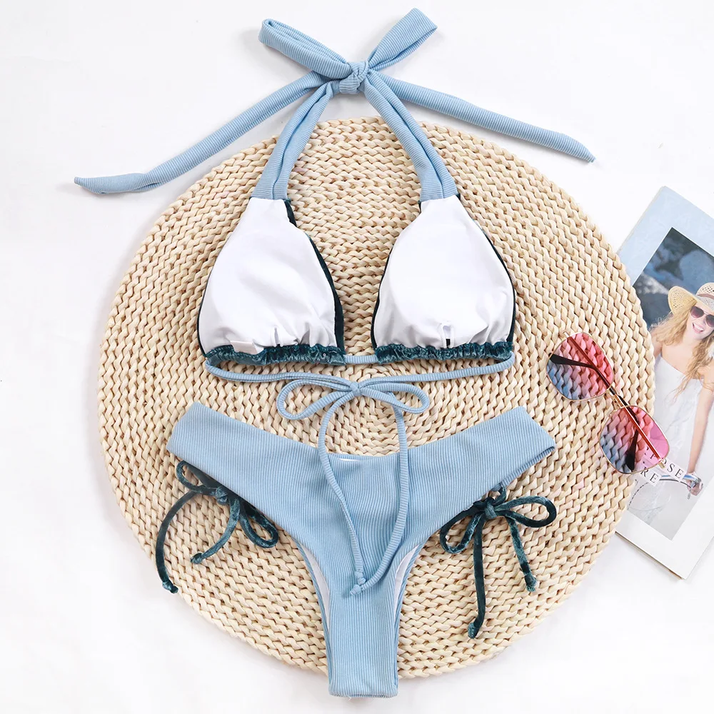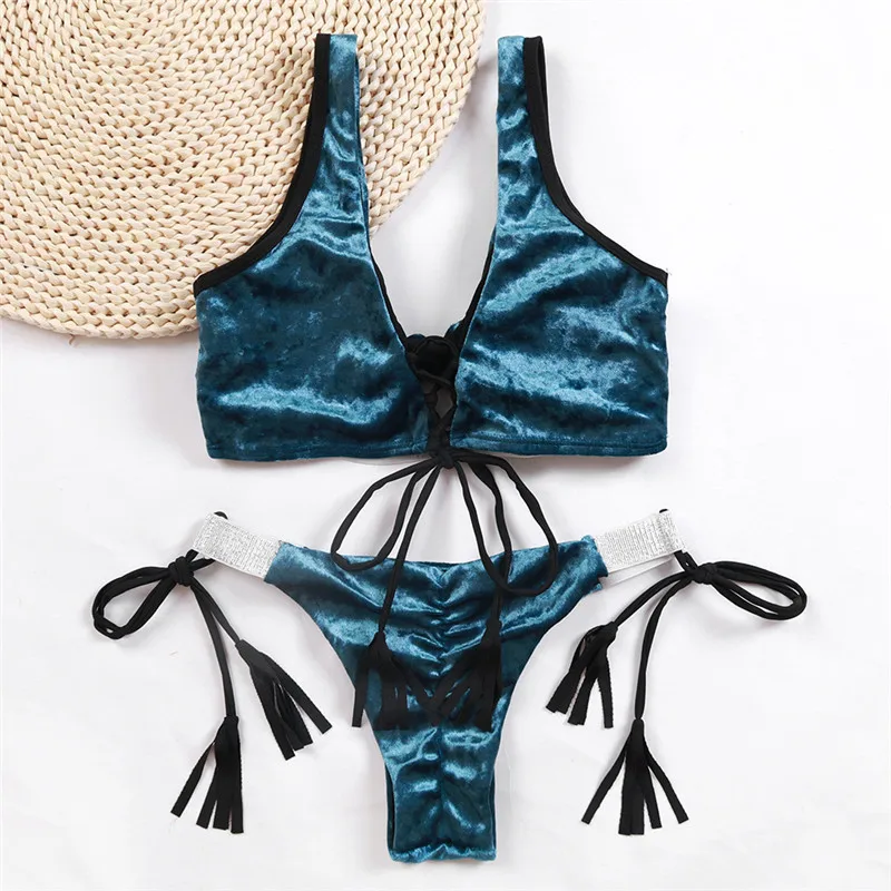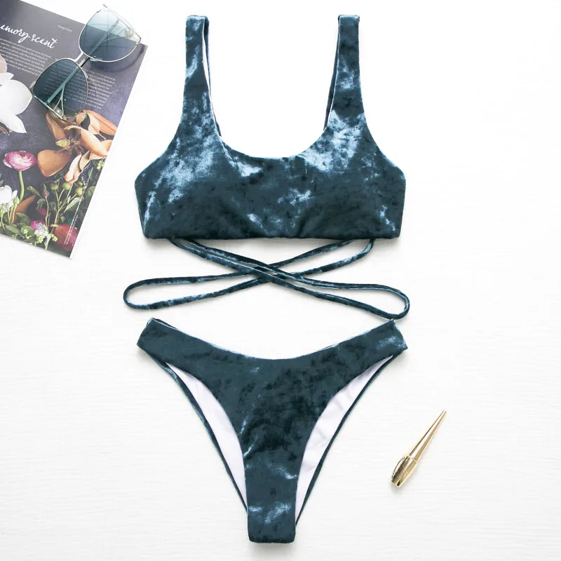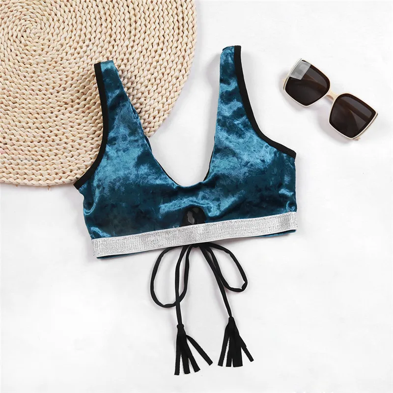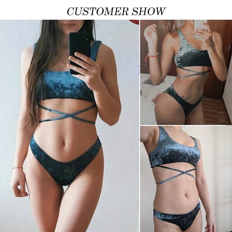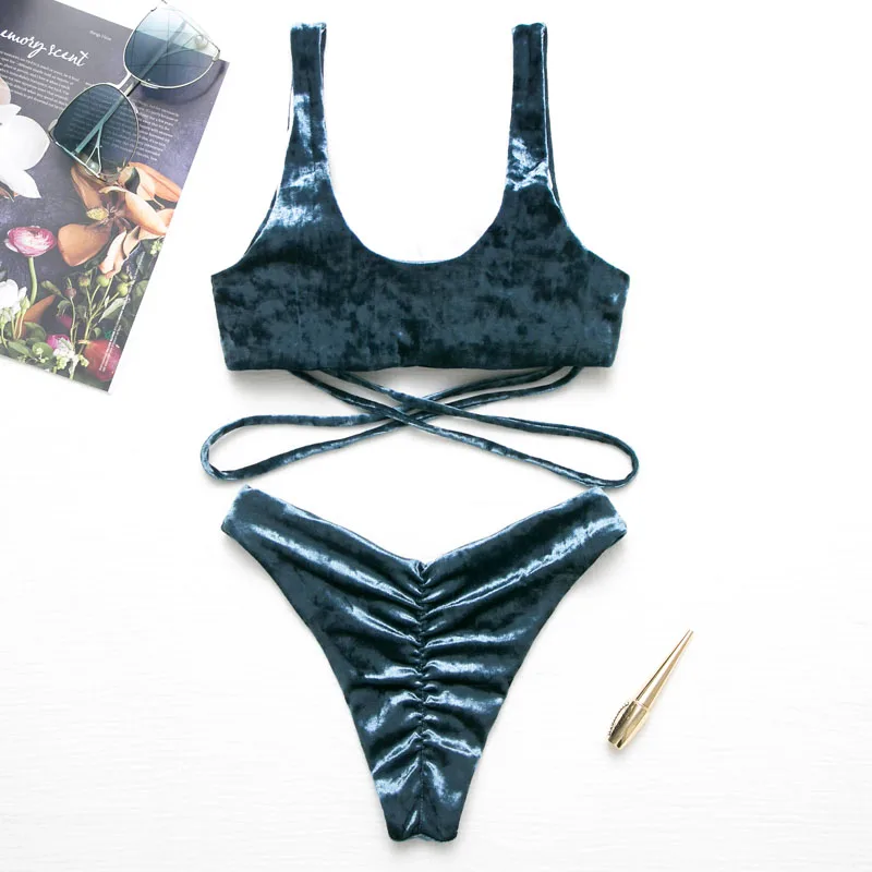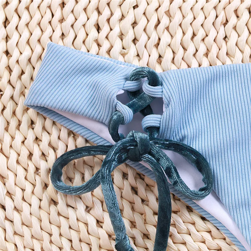 Пикантные бикини-бандо Peachtan 2020, Женский бандажный купальник, женский купальник с вырезами, Женская однотонная плиссированная одежда, купальный костюм