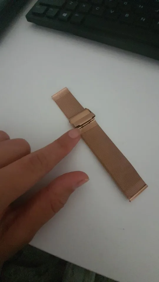 Ремешок очень приятный. В качестве отрицательной точки, размещение его довольно сложно, и вы оставляете ногти, чтобы подключить его, но как только он на нем выглядит отлично.
