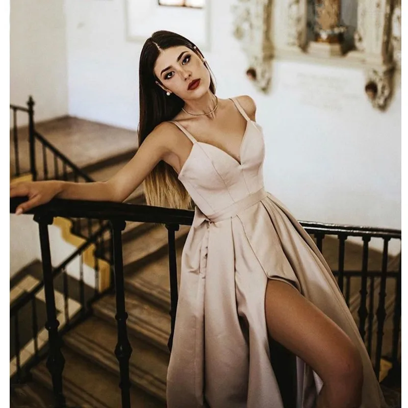Сексуальные платья для выпускного вечера с разрезом и V-образным вырезом, 2020