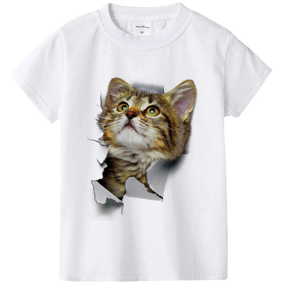 Футболка детская, с коротким рукавом, принтом в виде кошки, 2020