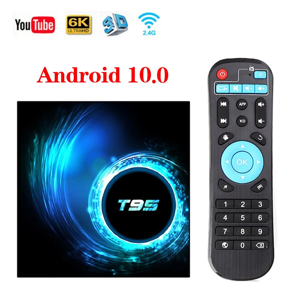 Сетевая приставка T95 TV box Android 10 4 ГБ 32 ГБ Allwinner H616 четырехъядерный H.265 4K 60fps медиаплеер 2 Гб 16 Гб ТВ-приставка