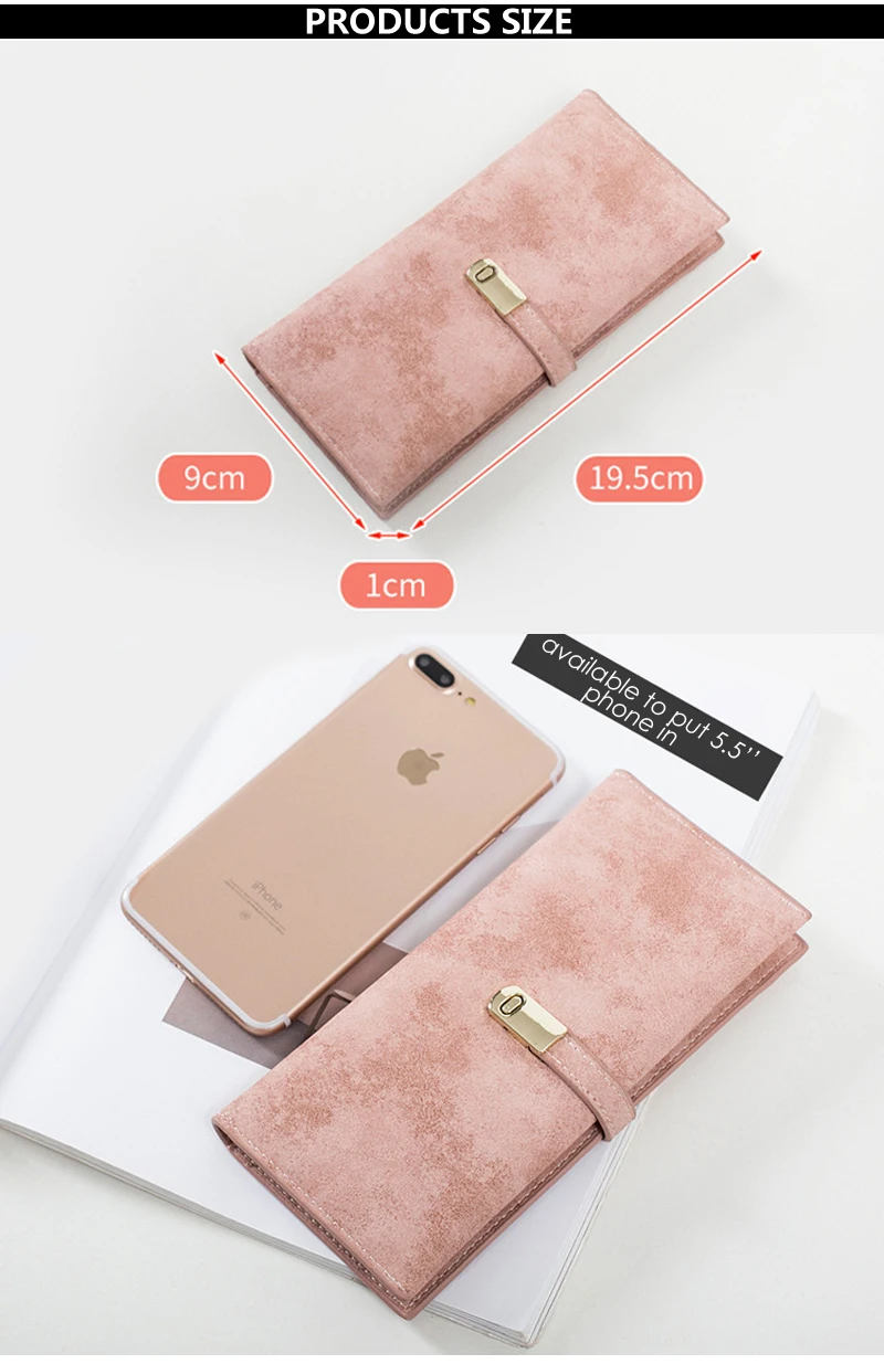Хит, ультратонкий, милый, матовый, кожаный, Длинный кошелек для женщин, магнитный засов, для телефона, кошельки для дам, держатель для карт, свежий Кошелек для монет для девочек