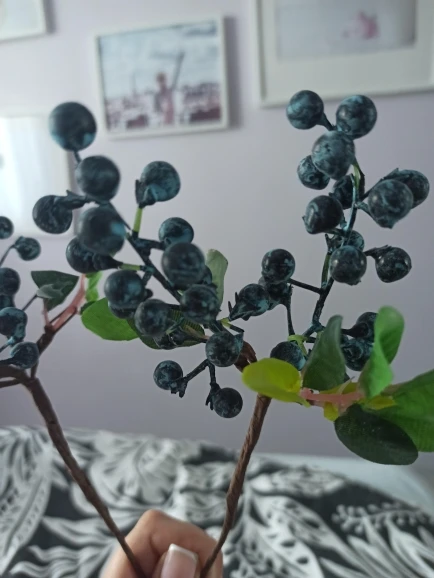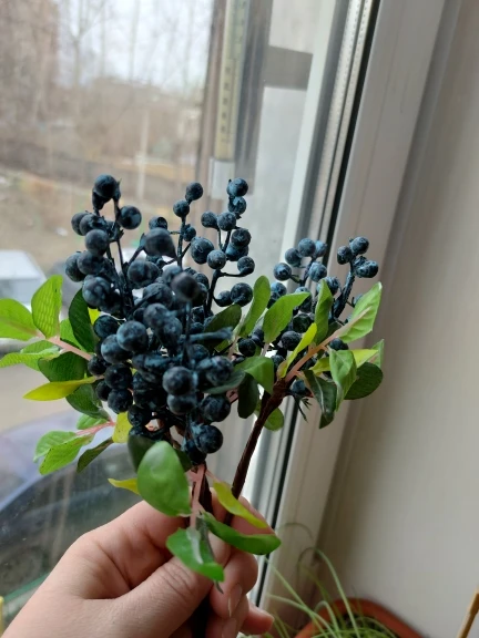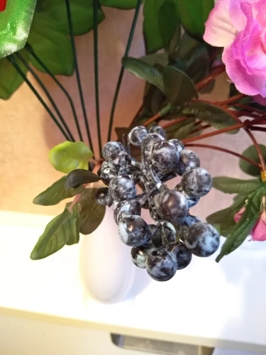 На фото выглядит больше и богаче. Заказала 6 шт. Получила дохленькие веточки с маленькими ягодками. В вазе смотрится бедненько, но красиво. Ягоды похожи на настоящие. Буду заказывать ещё.