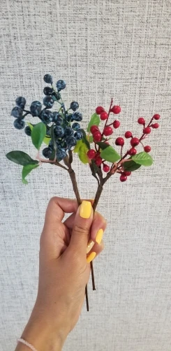 веточки ягодок выглядят красиво и натурально . соответствует описанию и фотографии продавца.