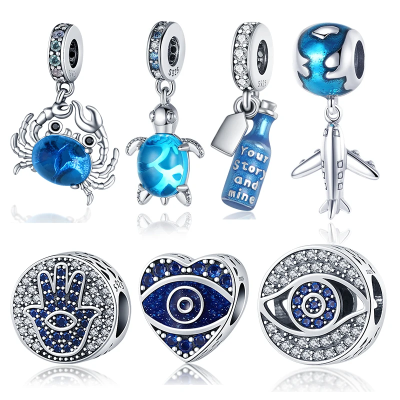 Горячая Распродажа Аутентичные 925 пробы серебро 14 Стиль синий оке...