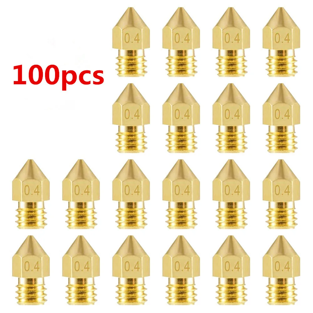 100 шт. MK7 MK8 сопло для 3d принтера 0,4 мм 0,3 0,2 0,5 мм MK8 сопло резьбовое 1,75 мм 3,0 мм Головка накаливания латунные насадки