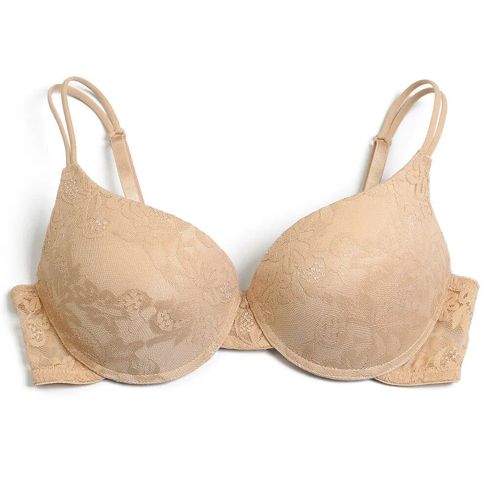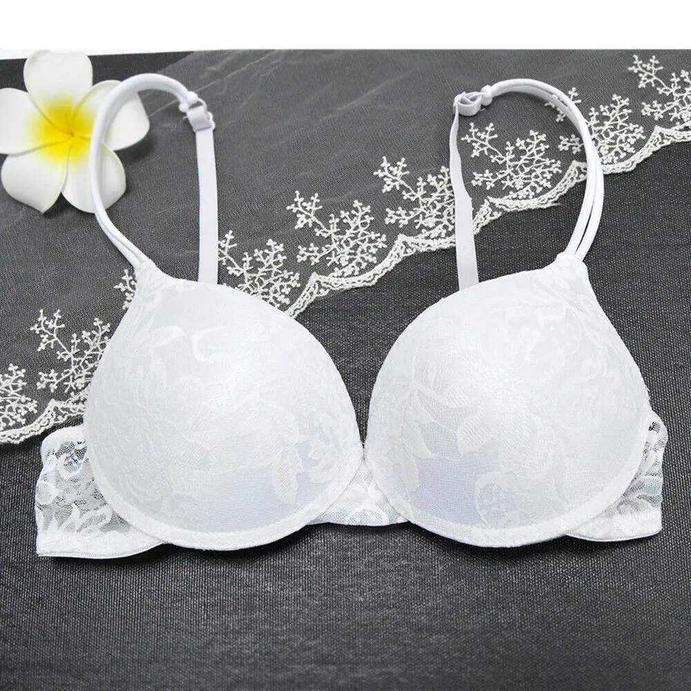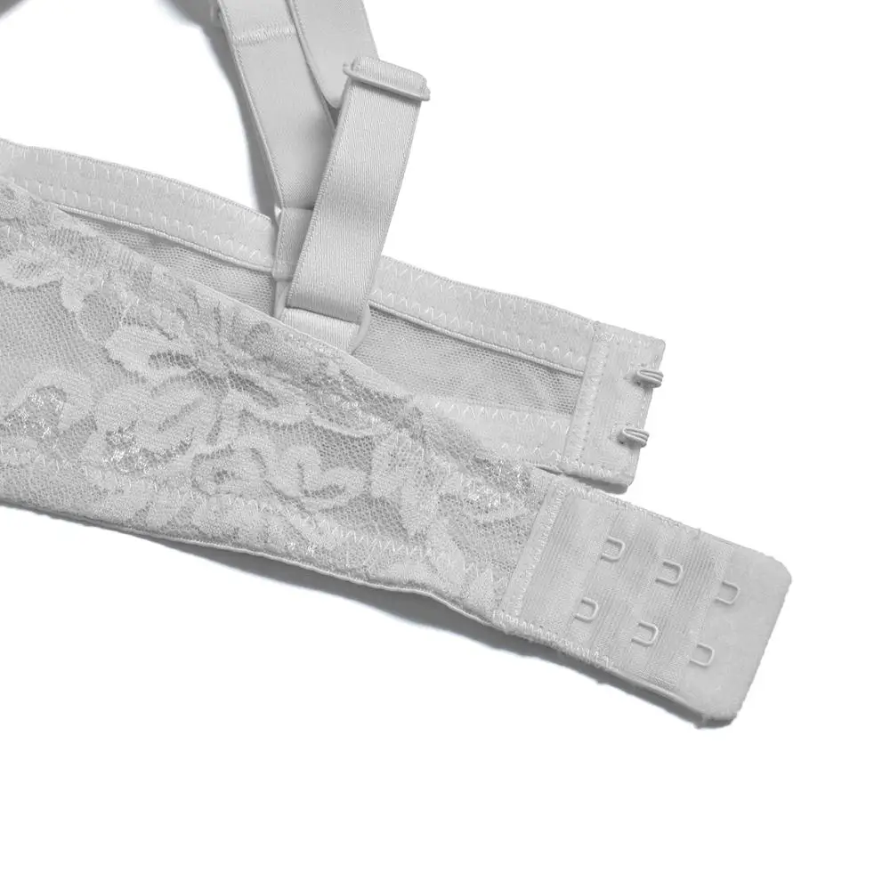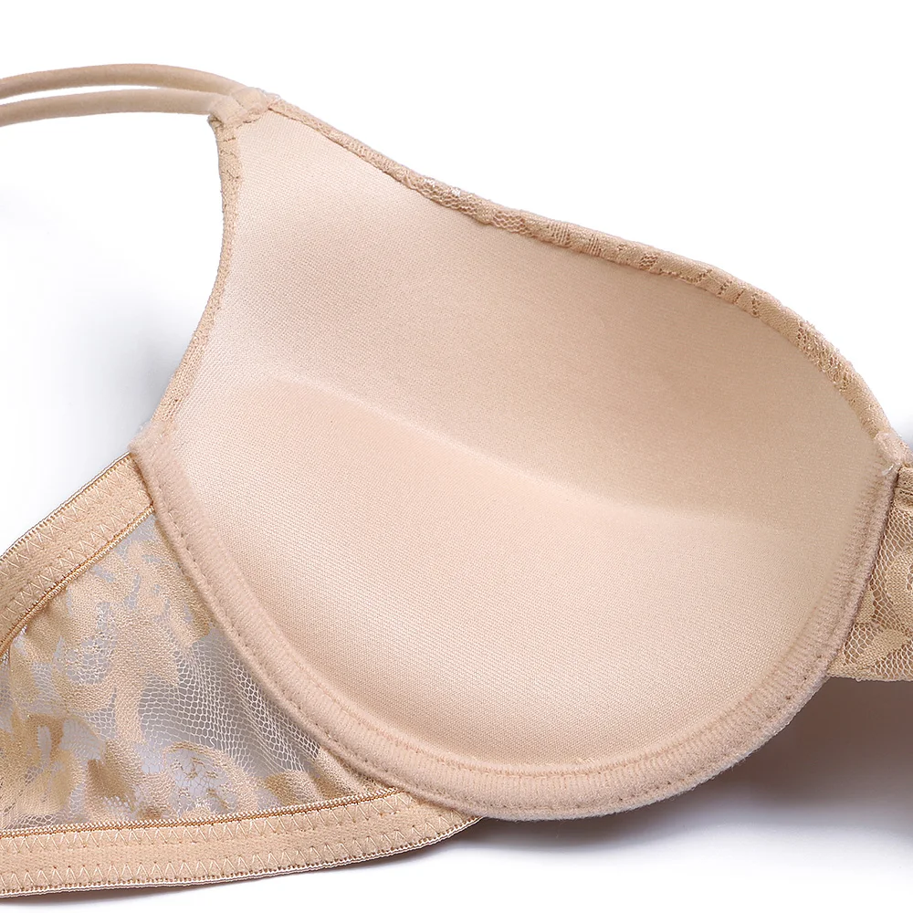 Бюстгальтер женский кружевной с чашками пуш-ап и цветочной вышивкой