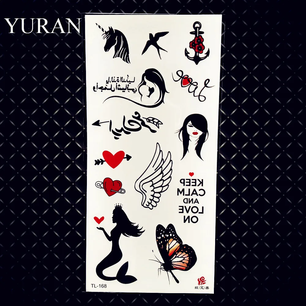 Маленькая Сексуальная поддельная временная татуировка в виде сердца, стикер для детей, водонепроницаемые татуировки русалки, бумажные татуировки для боди-арта, человеческий скелет