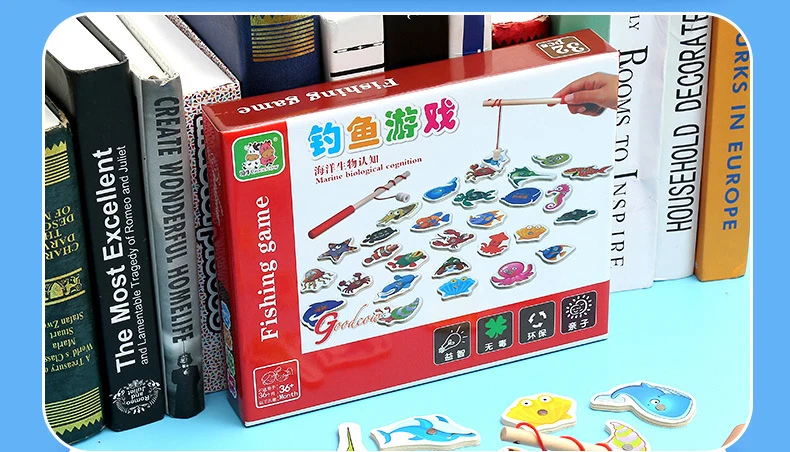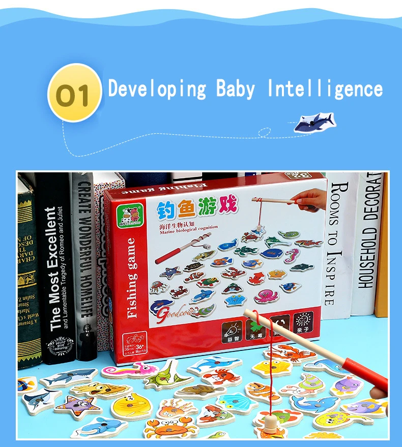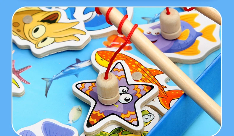 Деревянная Магнитная рыболовная игра для малышей, развивающие игрушки Монтессори, пазлы океанского мира, интерактивные игрушки для раннего обучения