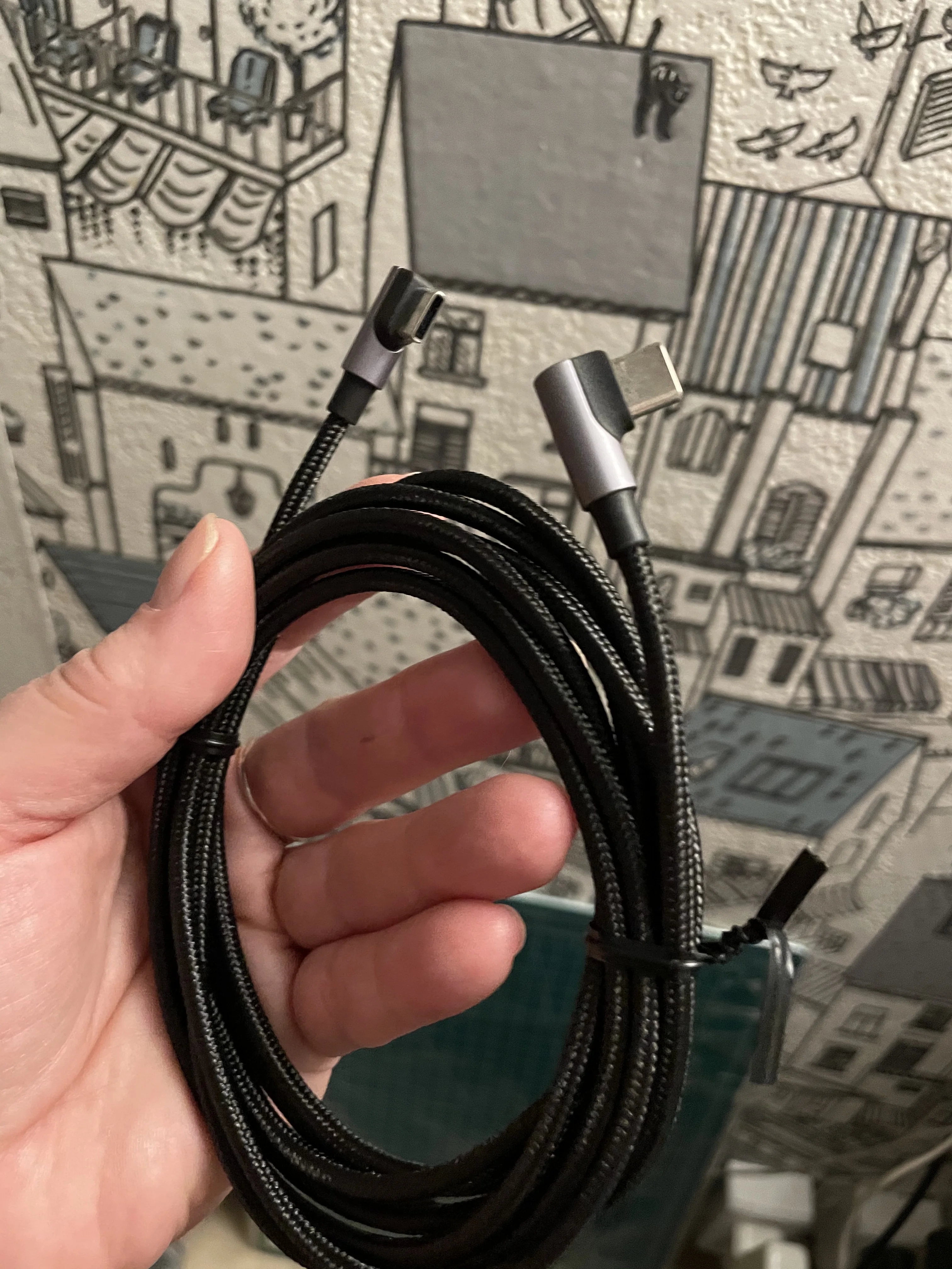Товар соответствует описанию. Кабель хорошего качества. С переходом на Type C и отказом от USB обязателен к покупке. Нужен был двойной угловой. И за того что он 60W, жестковат вышел. Посылку объединили с другими заказами и доставили в пятёрочку за 26 дней до 37RU, с полным отслеживанием. Спасибо продавцу.