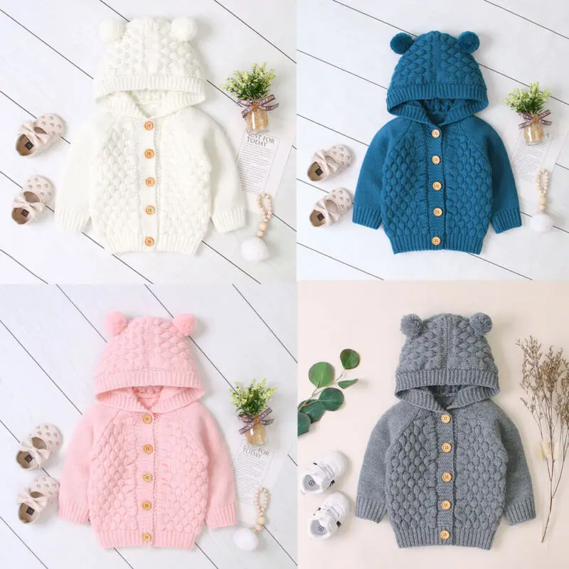 PUDCOCOмилый свитер для маленьких мальчиков и девочек трикотажные топы с капюшоном и длинными рукавами, теплое пальто, верхняя одежда, куртка 3-24 мес.