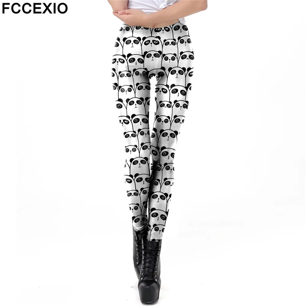 Леггинсы FCCEXIO женские с принтом панды, тренировочные повседневные эластичные штаны со средней талией, универсальные