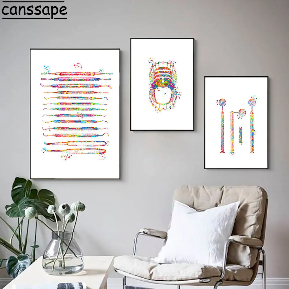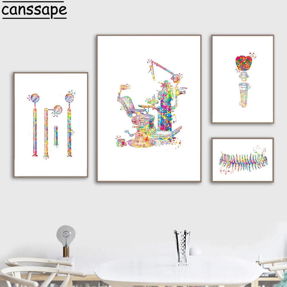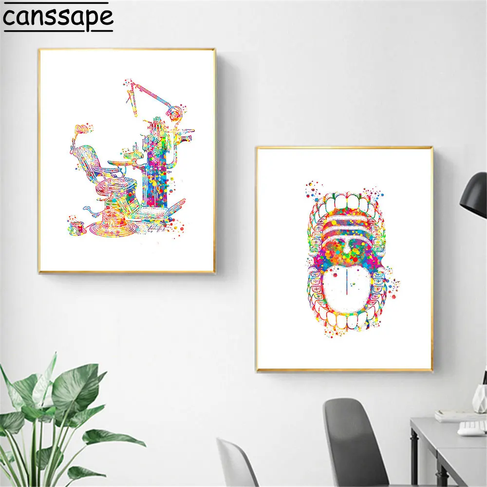 Стоматологическое оборудование плакат Анатомия зубов Холст Картина Подарок для дантиста картина медицинская стена искусство акварелью печать клиника декор стен