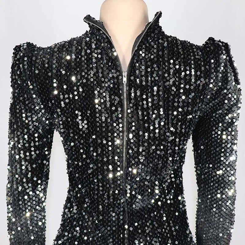 Женское вельветовое платье макси, вечернее облегающее платье с блестками, длинным рукавом и воротником-стойкой, для клуба и вечеринки, весна-осень 2020