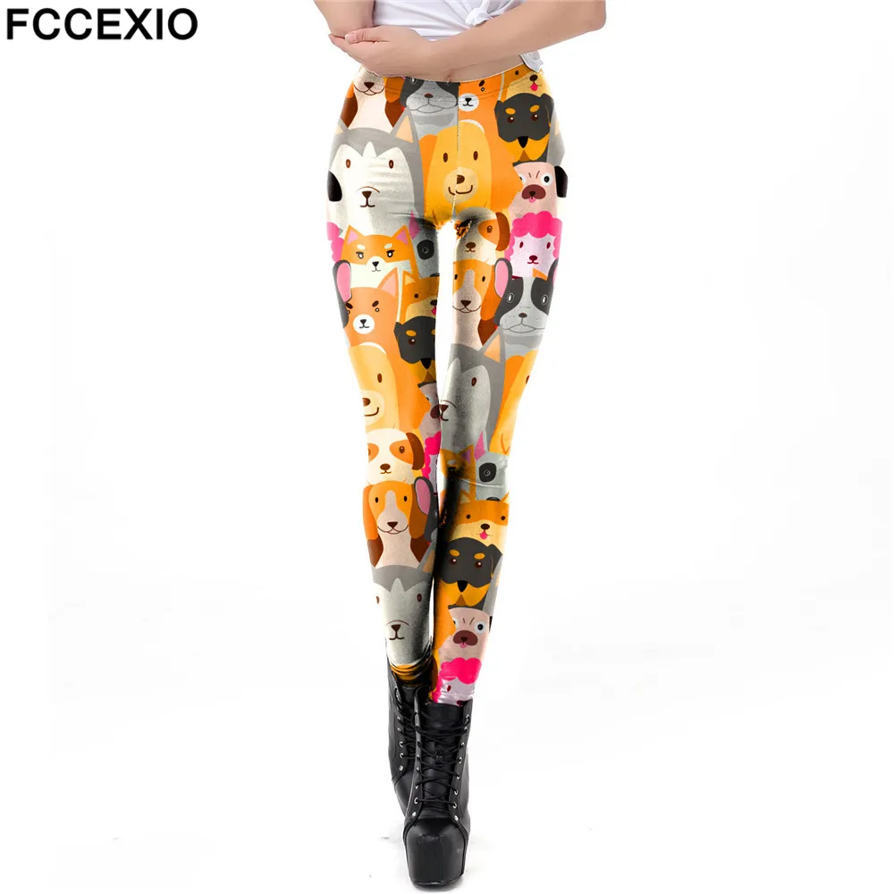 Модные милые леггинсы FCCEXIO с цифровой печатью для собак, женские эластичные леггинсы с высокой талией, 3D штаны с животными, леггинсы для движения