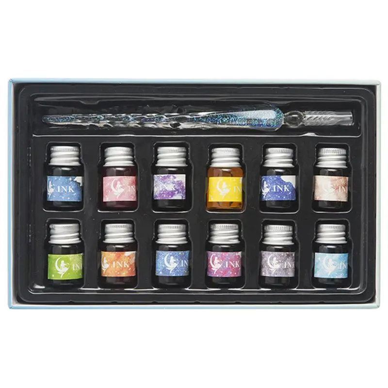 Ручка перьевая в комплекте со стеклянными чернилами, 13 шт.компл.
