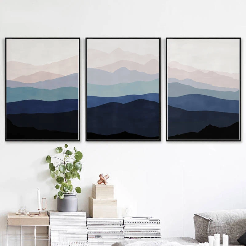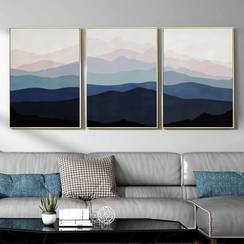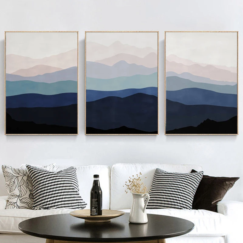 Абстрактная настенная живопись, горы, розовый, синий холст, живопись, горы, плакат и печать, настенные картины для гостиной, домашний декор