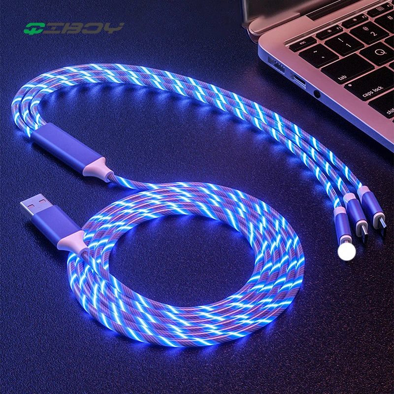 Светящийся USB-кабель 3 в 1, микро-USB Type-C кабель для Xiaomi 9 Sansung S8, светодиодный светильник, зарядный шнур, провод