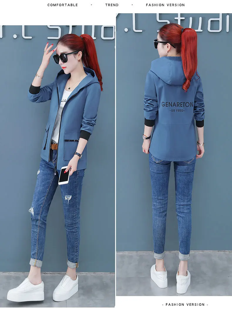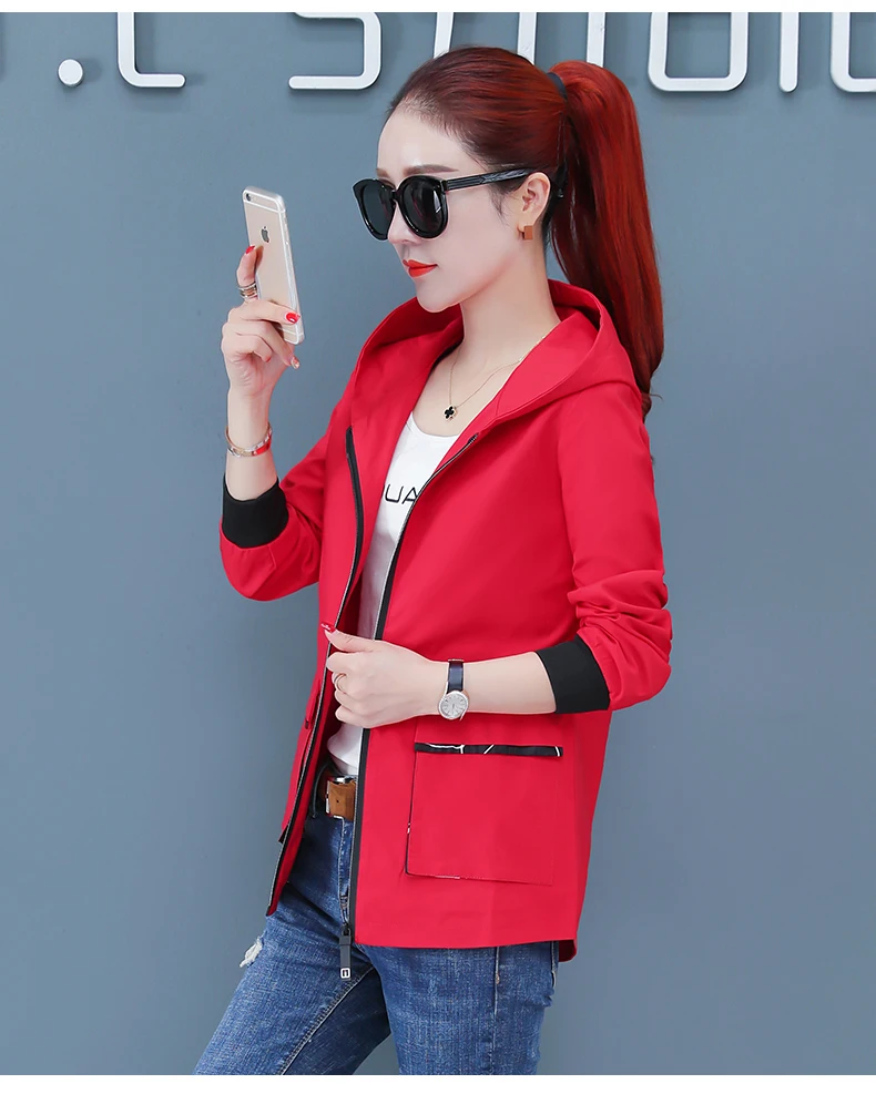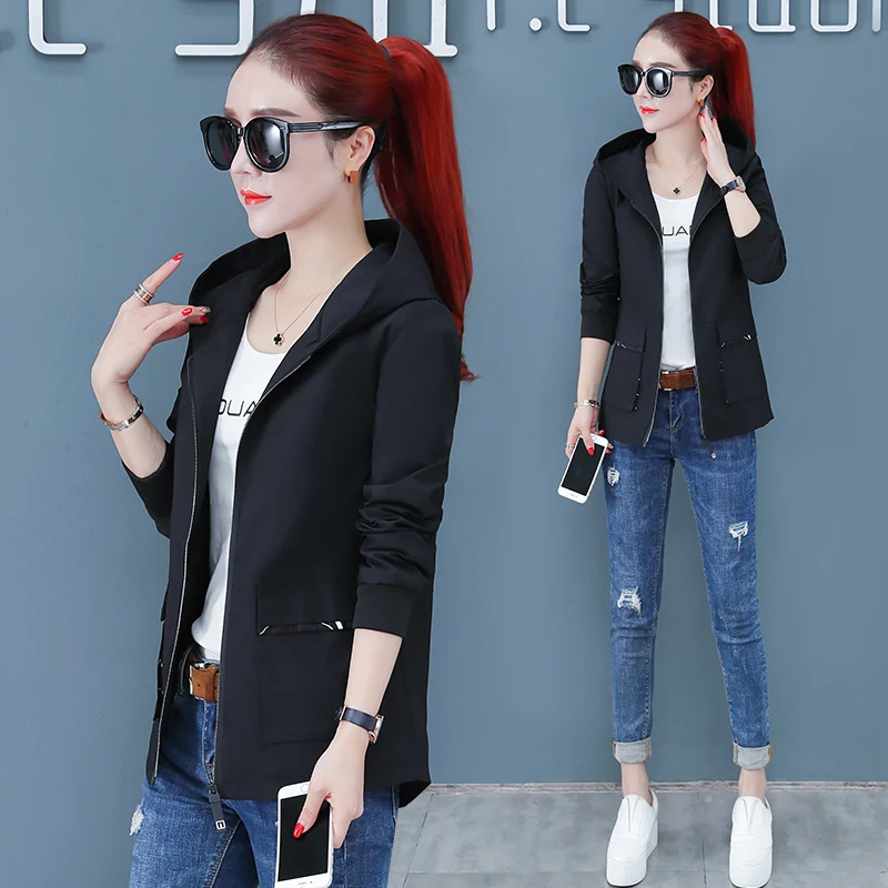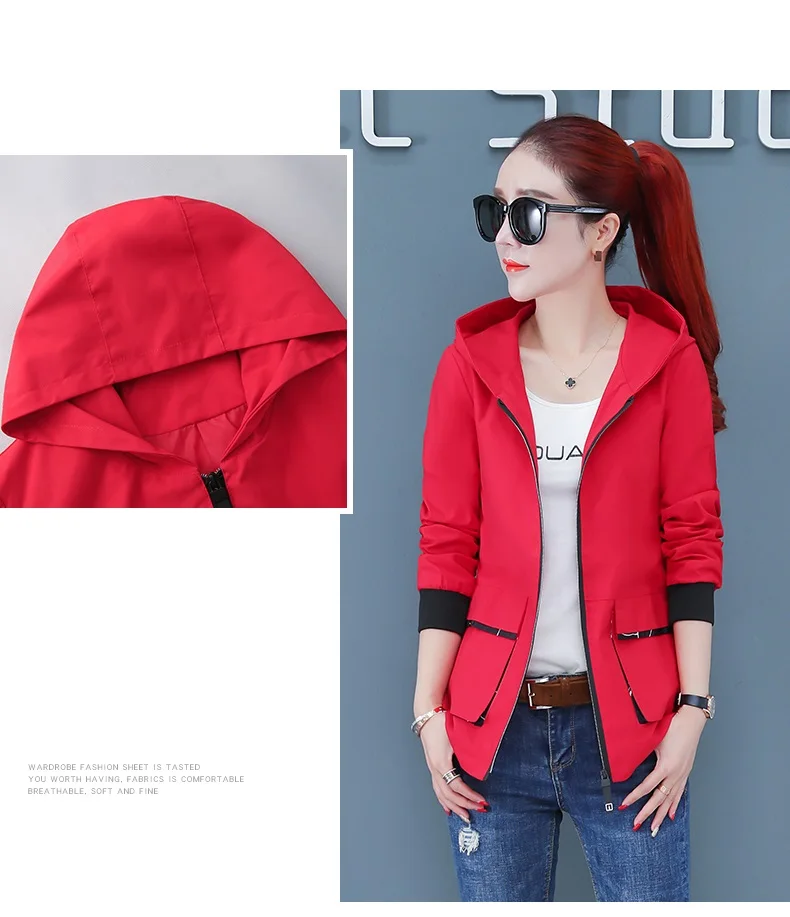 Женская короткая куртка, ветровка с капюшоном, большие размеры, корейская мода, трендовые товары, Новинка весна-осень 1473