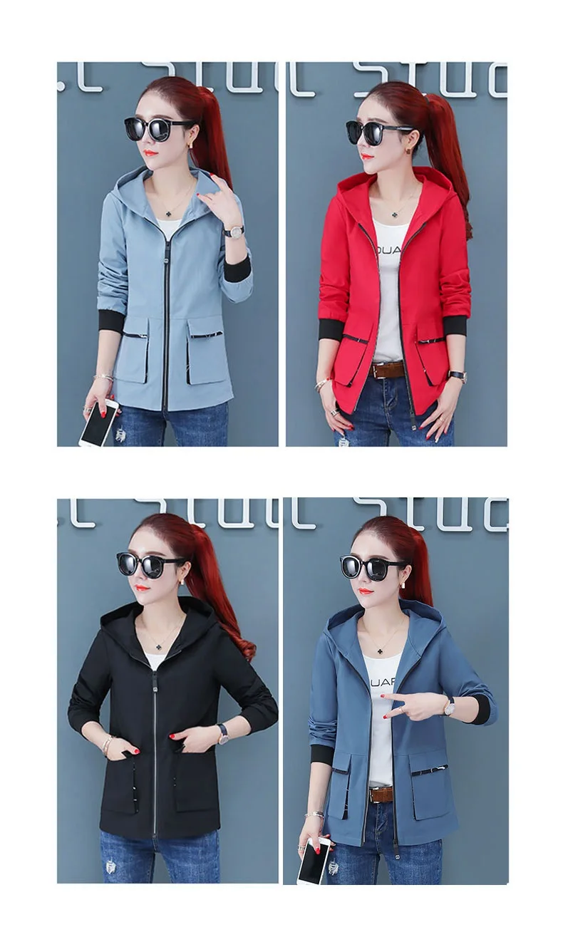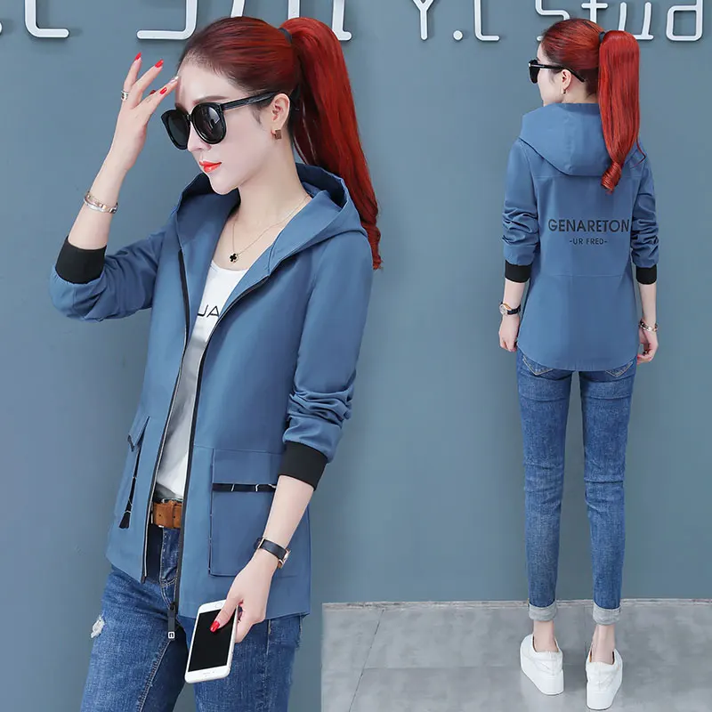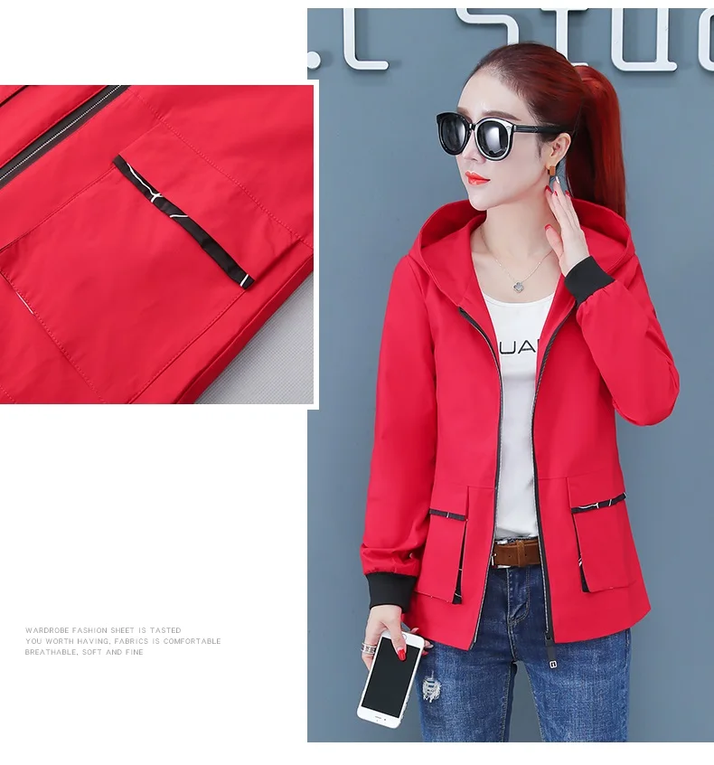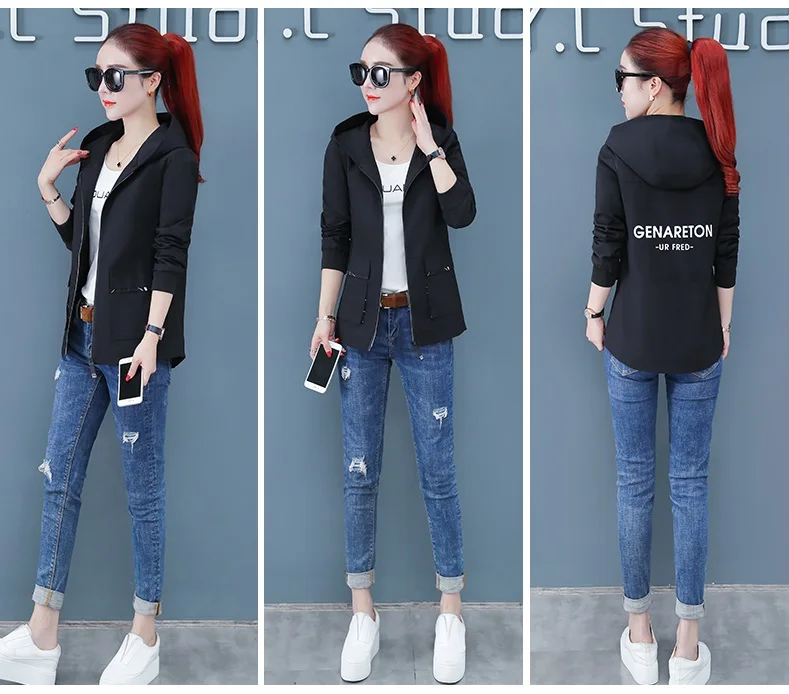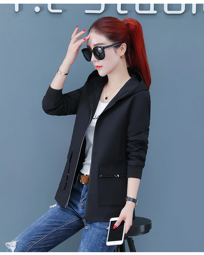 Женская короткая куртка, ветровка с капюшоном, большие размеры, корейская мода, трендовые товары, Новинка весна-осень 1473