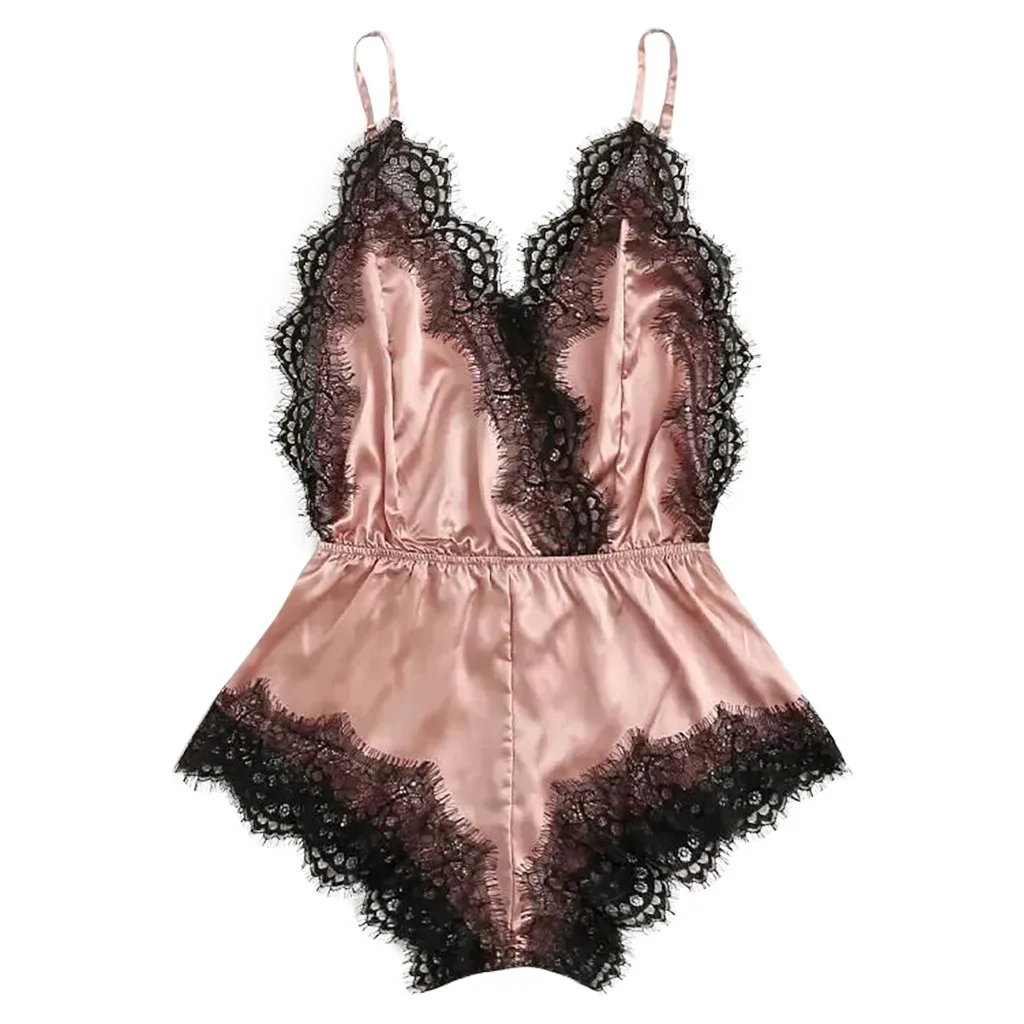 Нижнее белье с глубоким V-образным вырезом спереди, спинка с открытой спиной делает вас сексуальной и очаровательной Плотность талии очень эластичная. Бант украшен на талии Изысканное кружево на груди и регулируемый плечевой ремень Из-за шелка вы будете чувствовать себя мягкими и гладкими. Атласная ткань не очень эластична, но Пижама свободная и повседневная, что позволяет вашему телу лучше расслабиться.