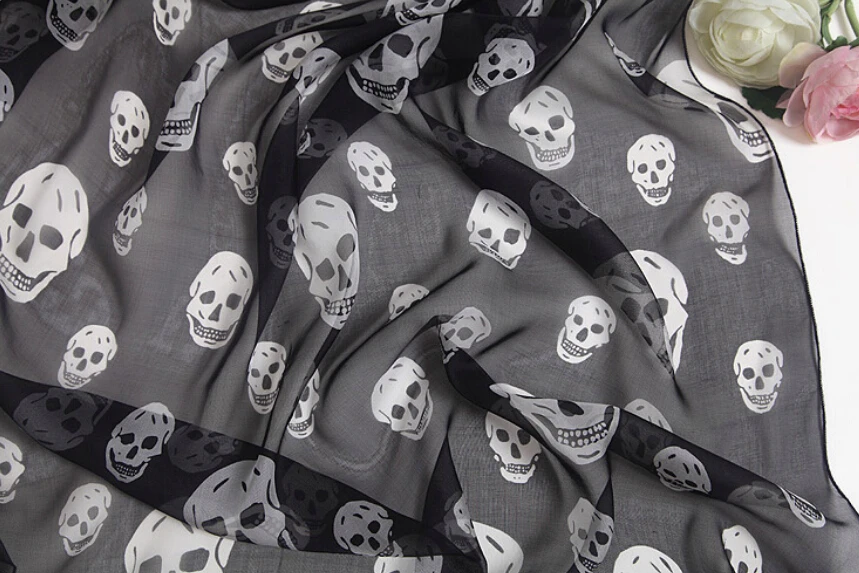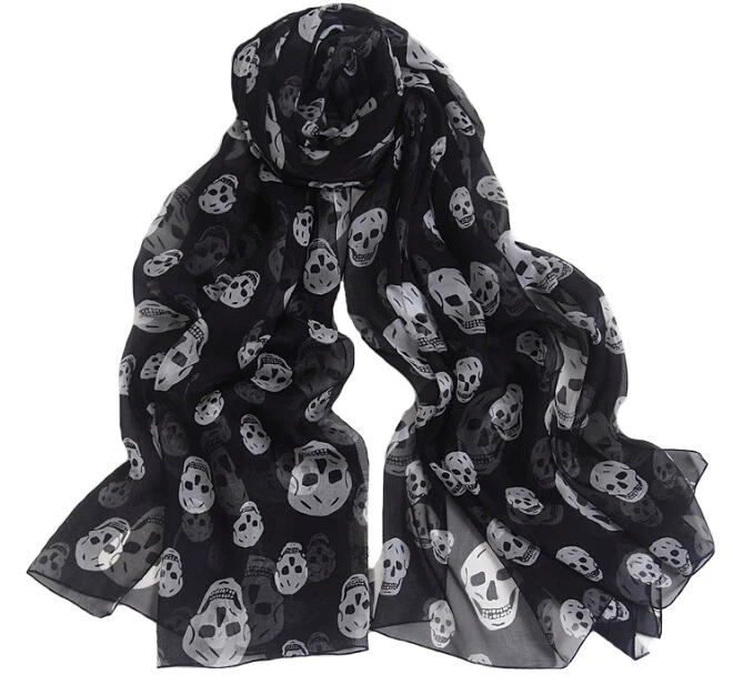 Летняя Пляжная длинная шаль 2019 модный шифоновый шелковый шарф с принтом черепа Mulim хиджаб для мужчин и женщин мягкий тонкий шарф Прямая поставка