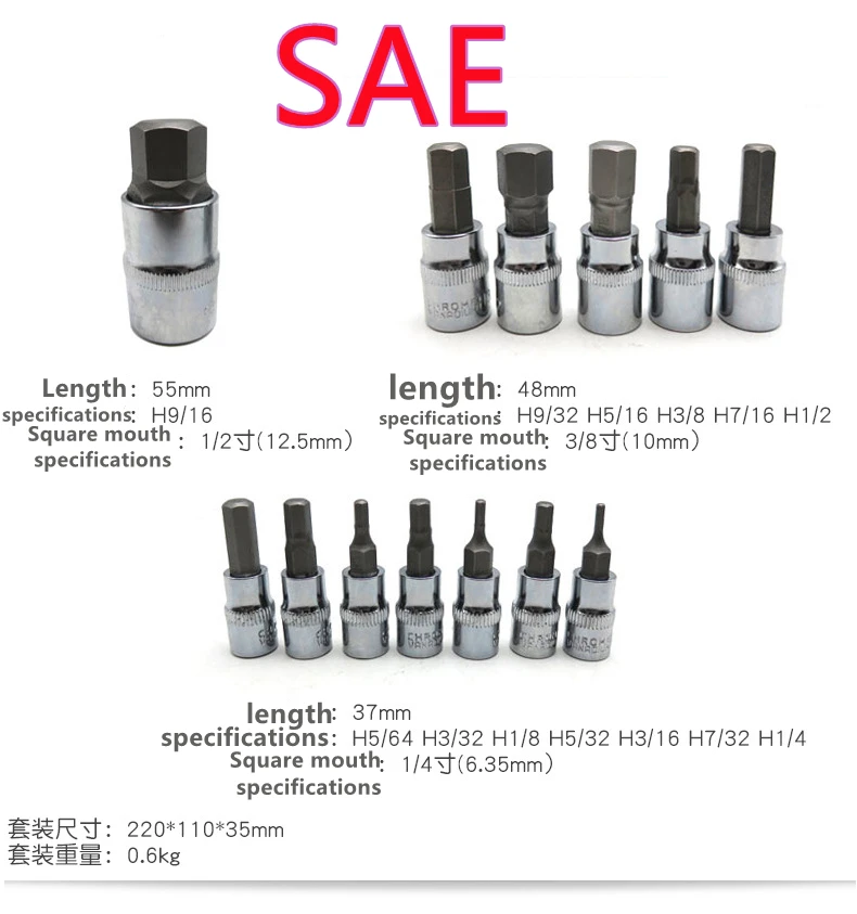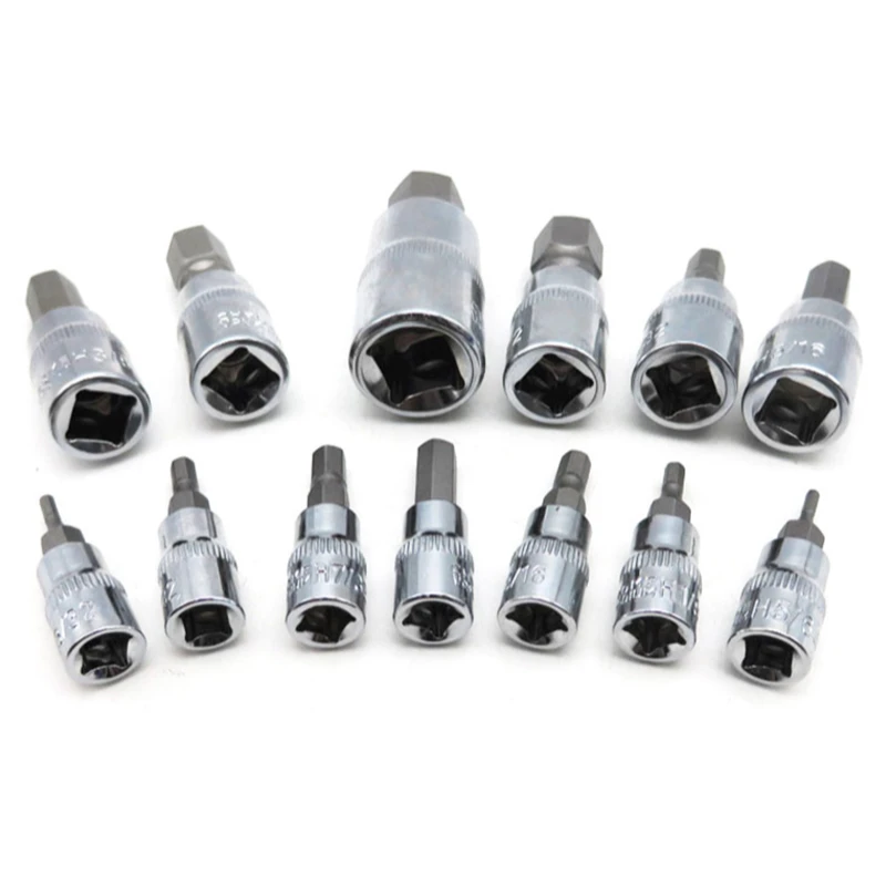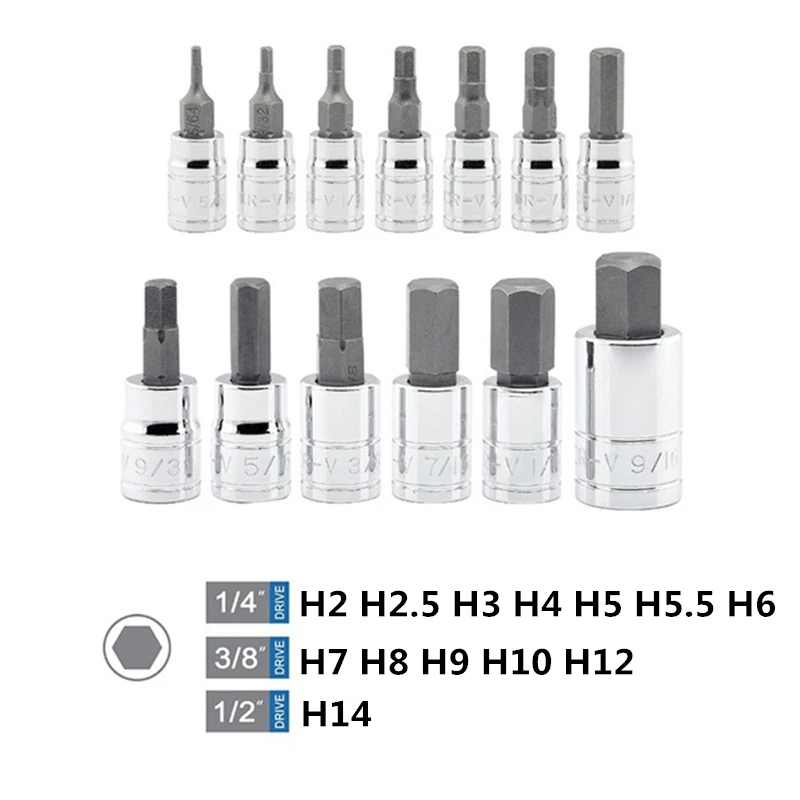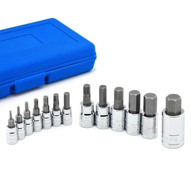 13 шт.компл. комплект насадок для сверл с шестигранной головкой SAE и метрическим размером, комплект торцевых насадок Cr-v, 38 "14" "12""