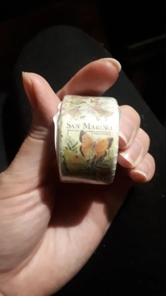 Потрясающий принт но намотка очень плотная, скотч бумажный, края резные - как у марки, при отклеивании легко рвутся по бокам (