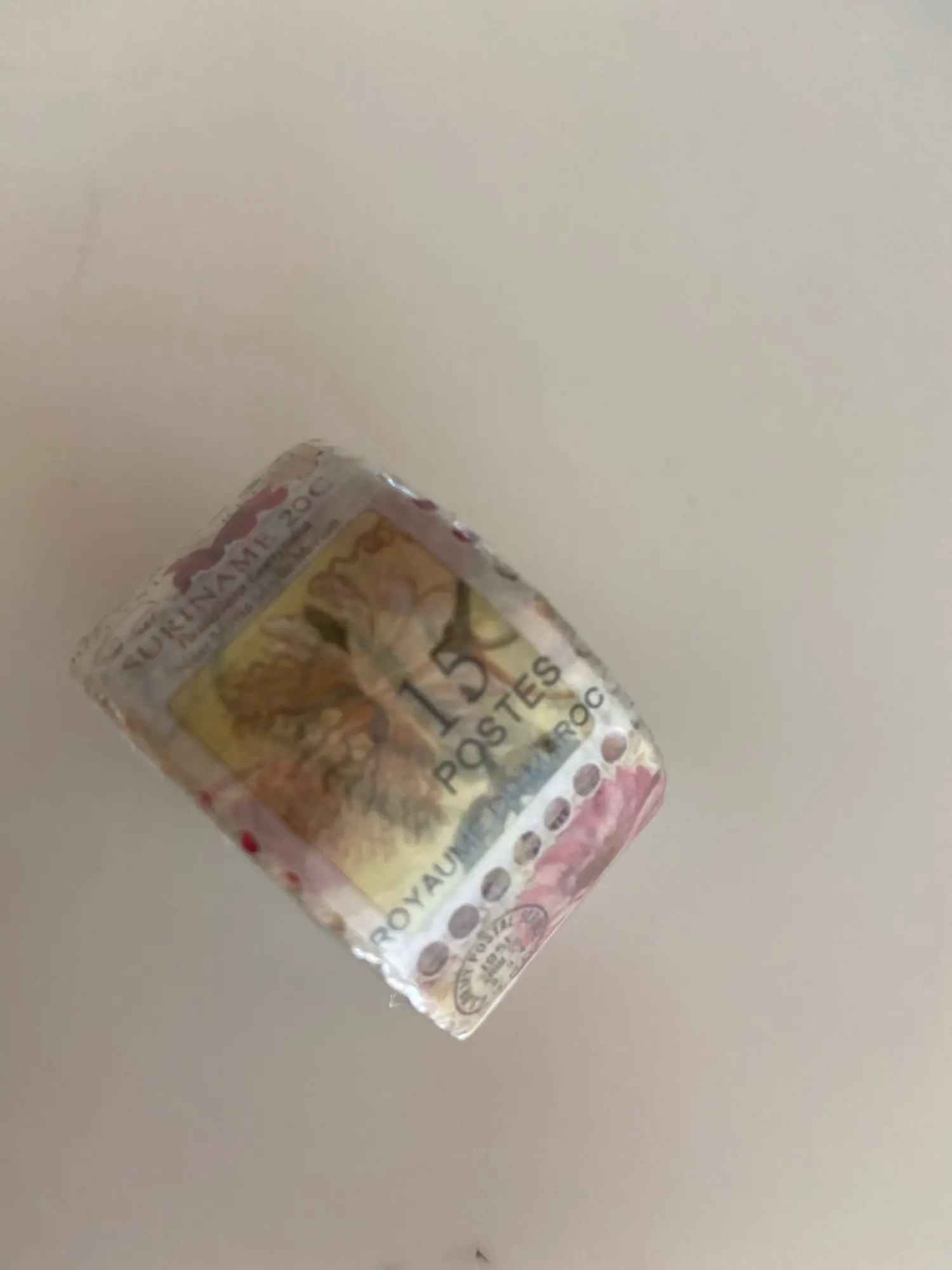 Très joli autocollant washi de très bonne qualité et magnifique couleur très douces, emballé dans un emballage plastique et une étiquette ronde par dessus avec le motif du washi tape pour le reconnaître. Enfin c'est un peu difficile à expliquer. Je suis très contente de mon achat. Je recommande le vendeur.
