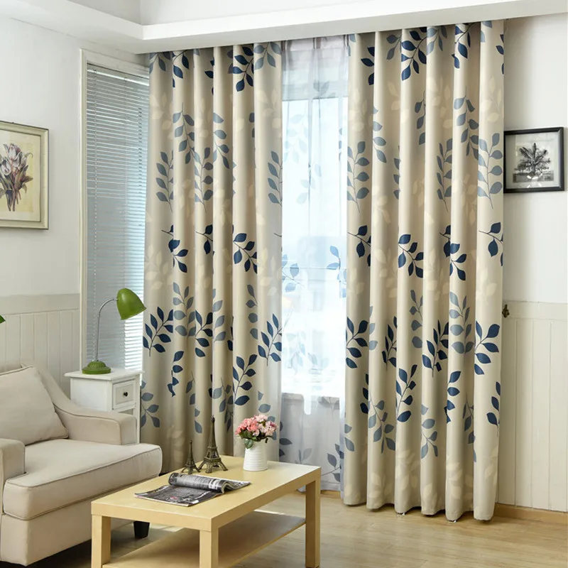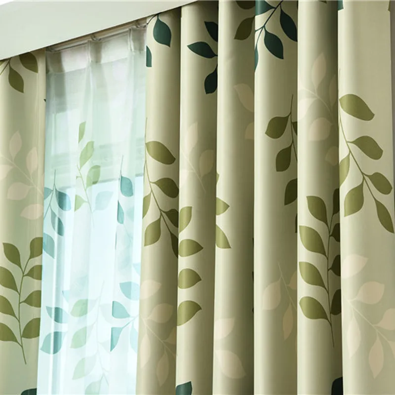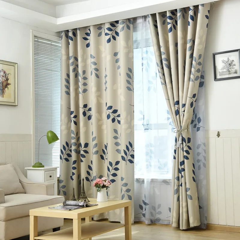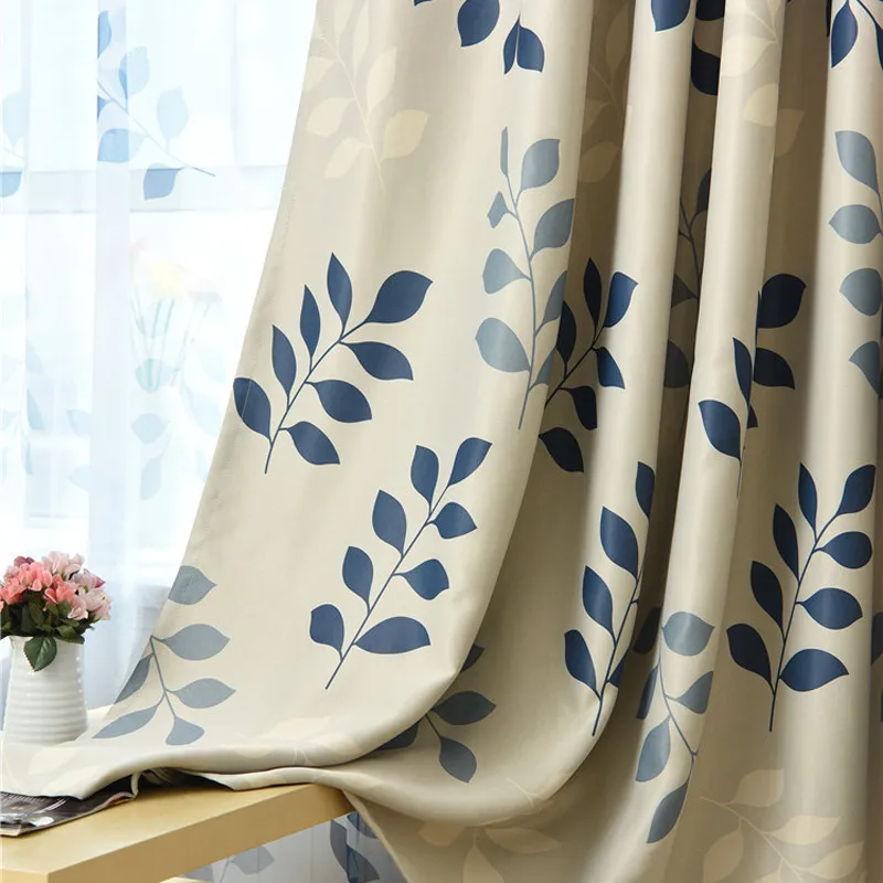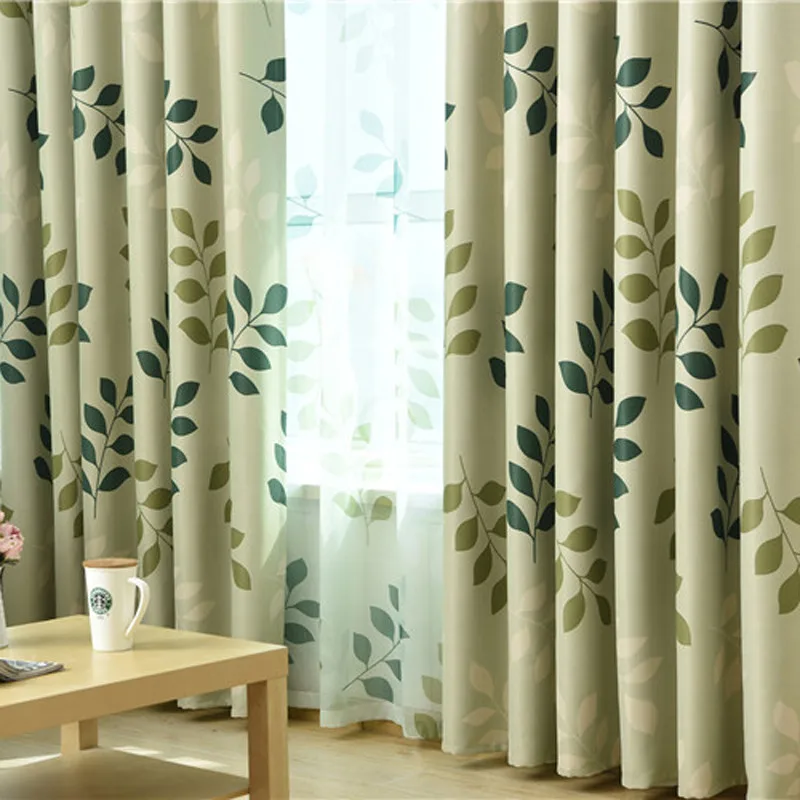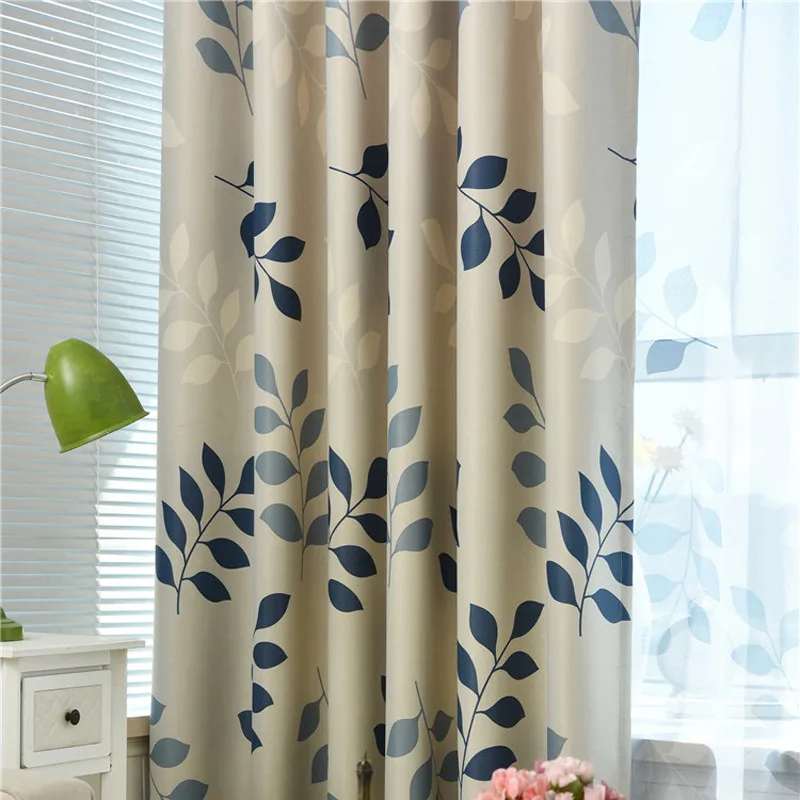 Шторы блэкаут с принтом листьев в пасторальном стиле, элегантные Кухонные панели из полиэстера, для гостиной, голубого и зеленого цвета