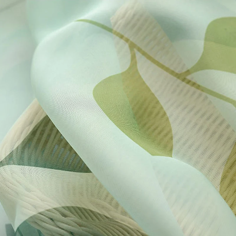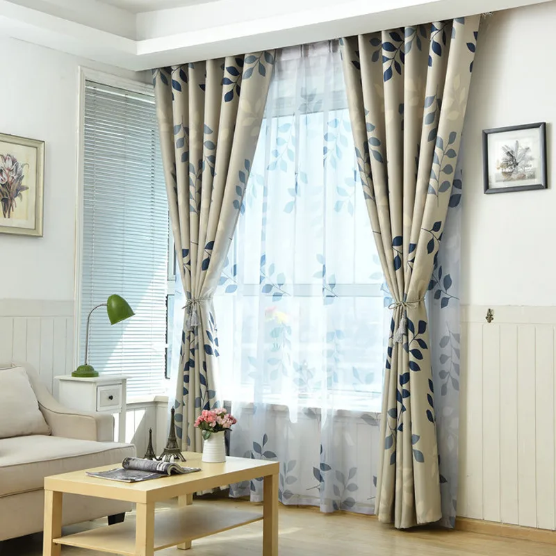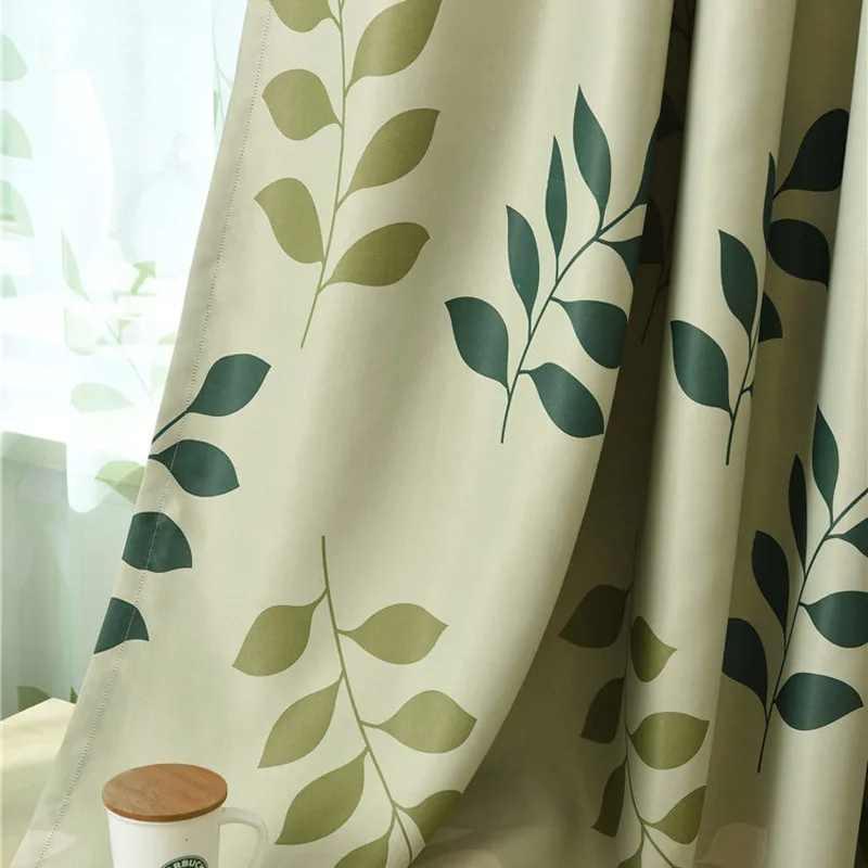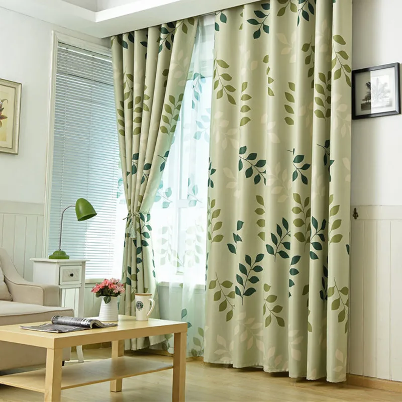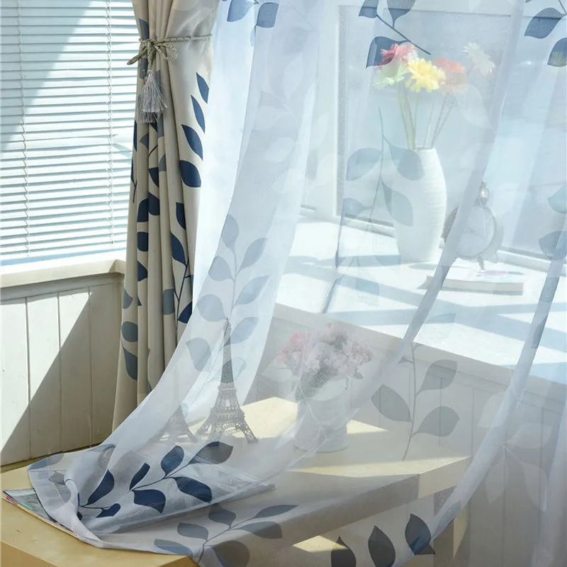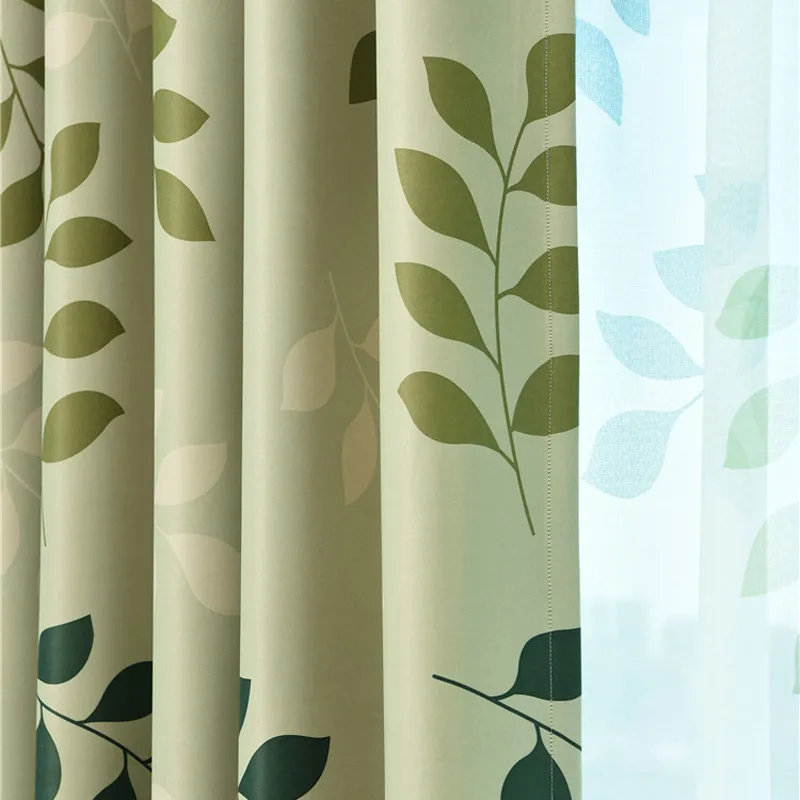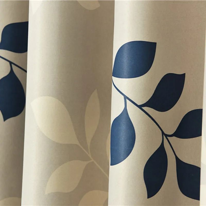 Шторы блэкаут с принтом листьев в пасторальном стиле, элегантные Кухонные панели из полиэстера, для гостиной, голубого и зеленого цвета