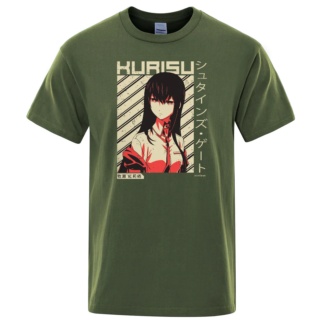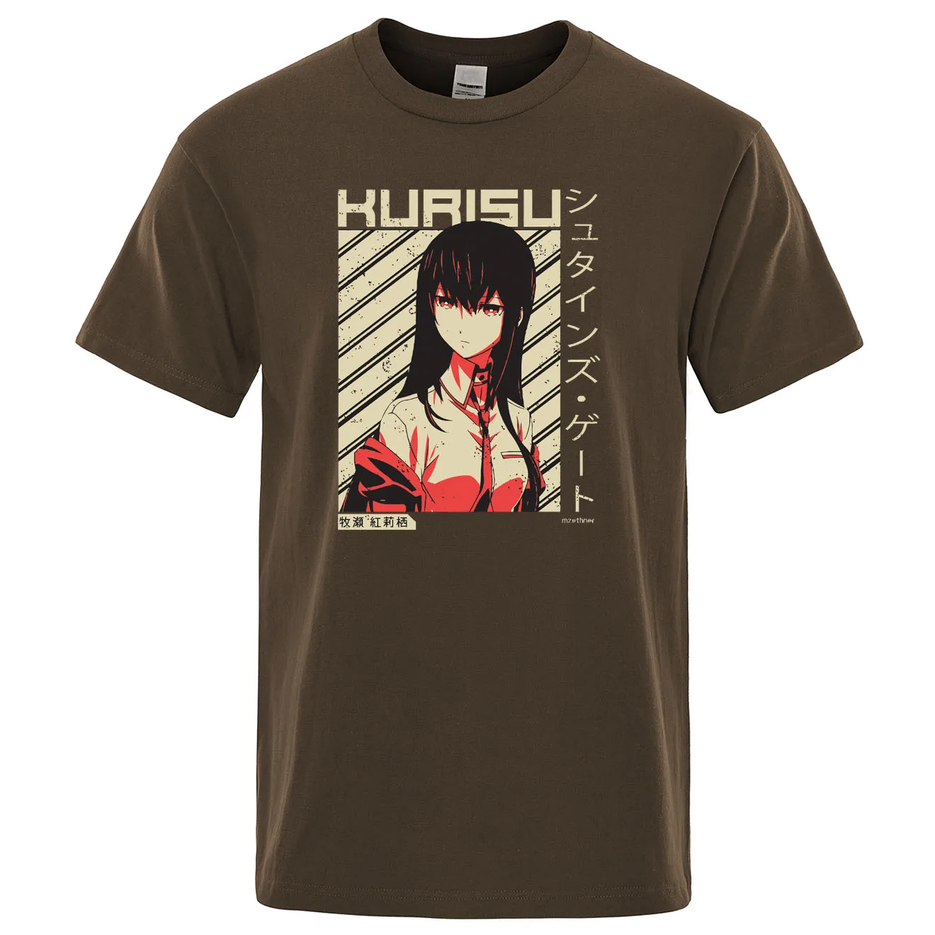 Makise Kurisu Новое поступление Летняя мужская футболка в стиле панк рок мужские хлопковые повседневные футболки ворота Топы