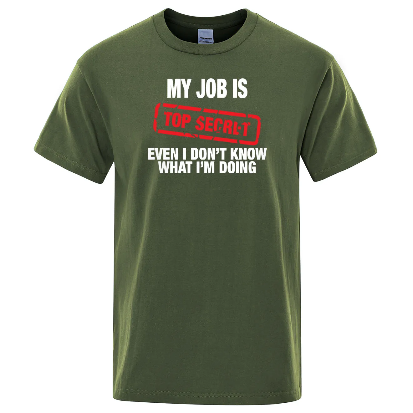 Забавная Мужская футболка MY work IS TOP SECRET, летняя Хлопковая мужская футболка в стиле панк-рок, Юмористическая футболка в стиле хип-хоп, повседневные топы, Мужская футболка