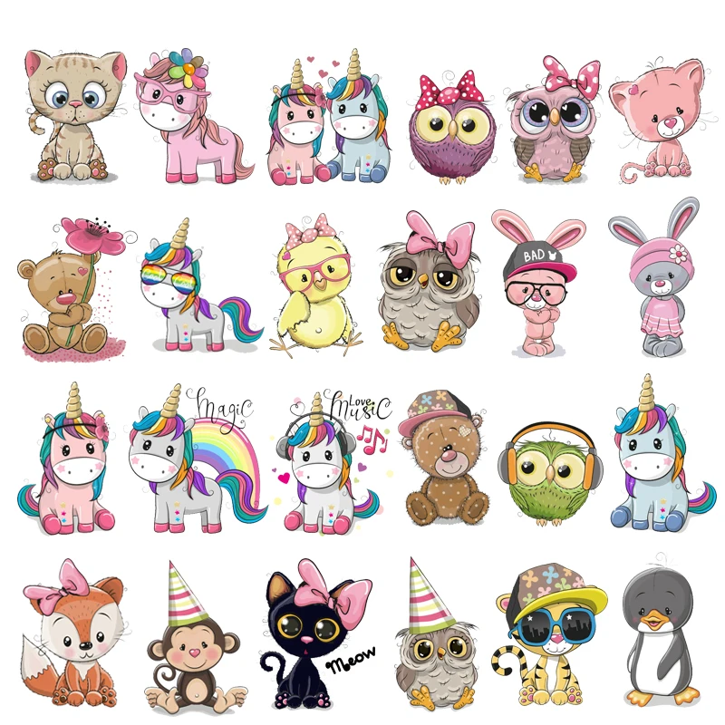 Милые нашивки в виде животных, утюжок для переодевания, нашивки в виде мультяшного кота, единорога, совы, медведя для детей, аппликация на одежду, термопереводные наклейки DIY