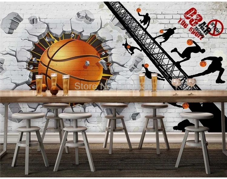 Пользовательские 3D обои, современные белые кирпичные стены, баскетбольные ретро-обои для бара, кафе, ресторана, бумажные обои