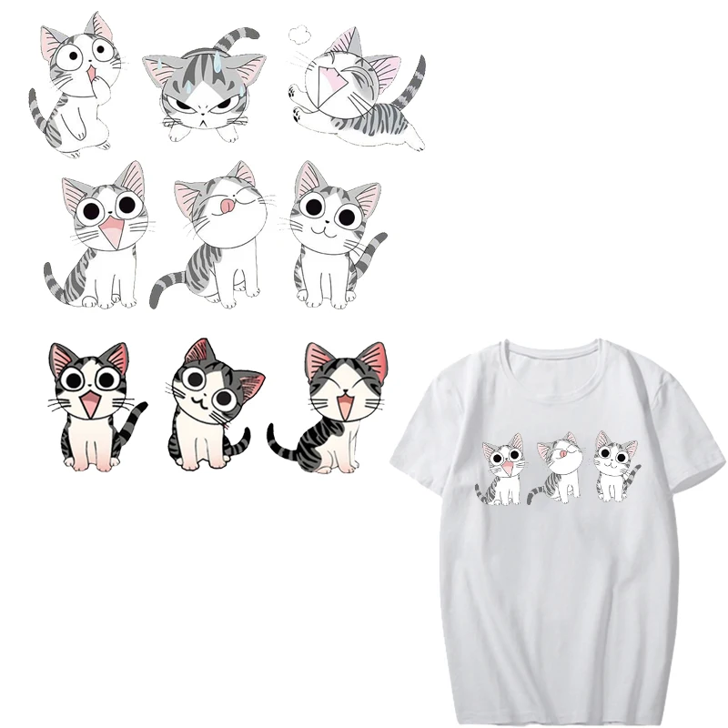 Виниловые стираемые наклейки с мультяшным котом для детской одежды, сделай сам, футболка, аппликация, термопечать с утюгом