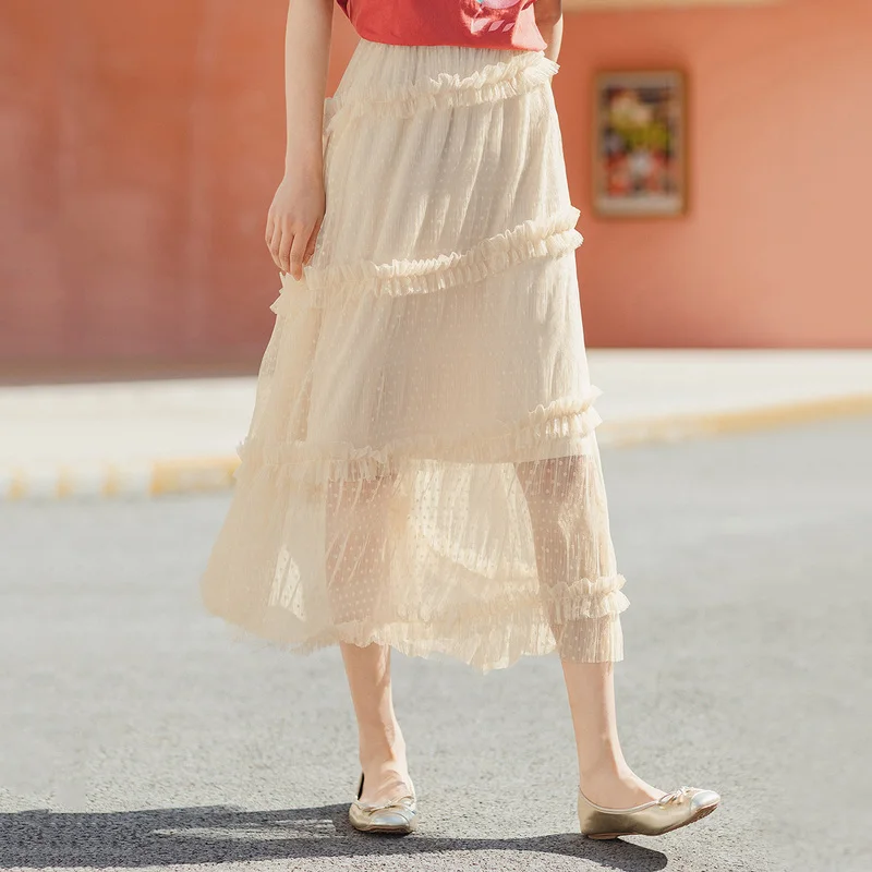 INMAN летняя миди кавайная женская нижняя одежда Бежевая белая литературная элегантная сказочная стильная гренадиновая юбка-трапеция с оборками
