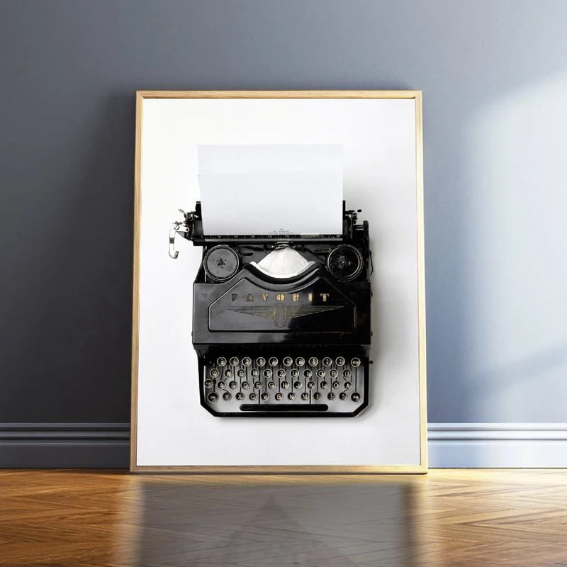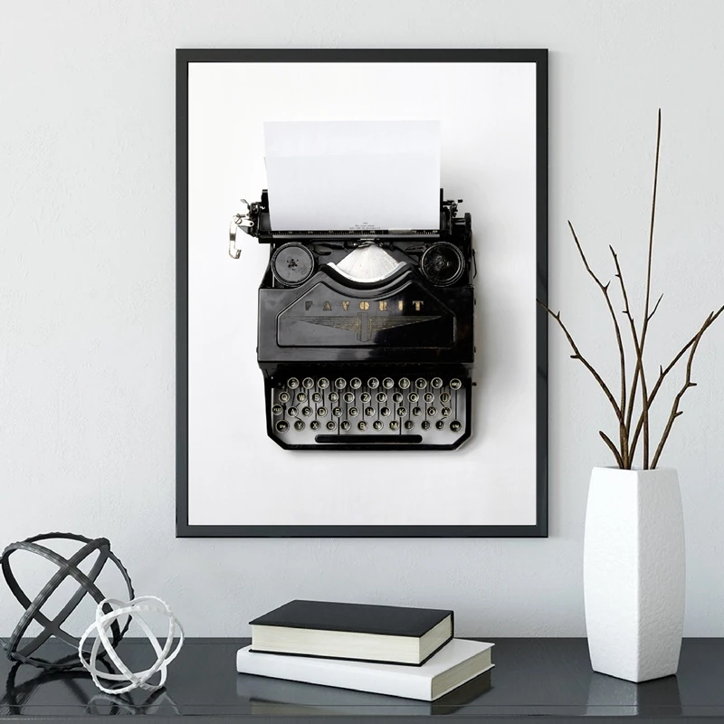 Винтажная пишущая машинка, холст, плакат, черно-белая фотография, ретро искусство стены, офисное украшение, его или ее подарок