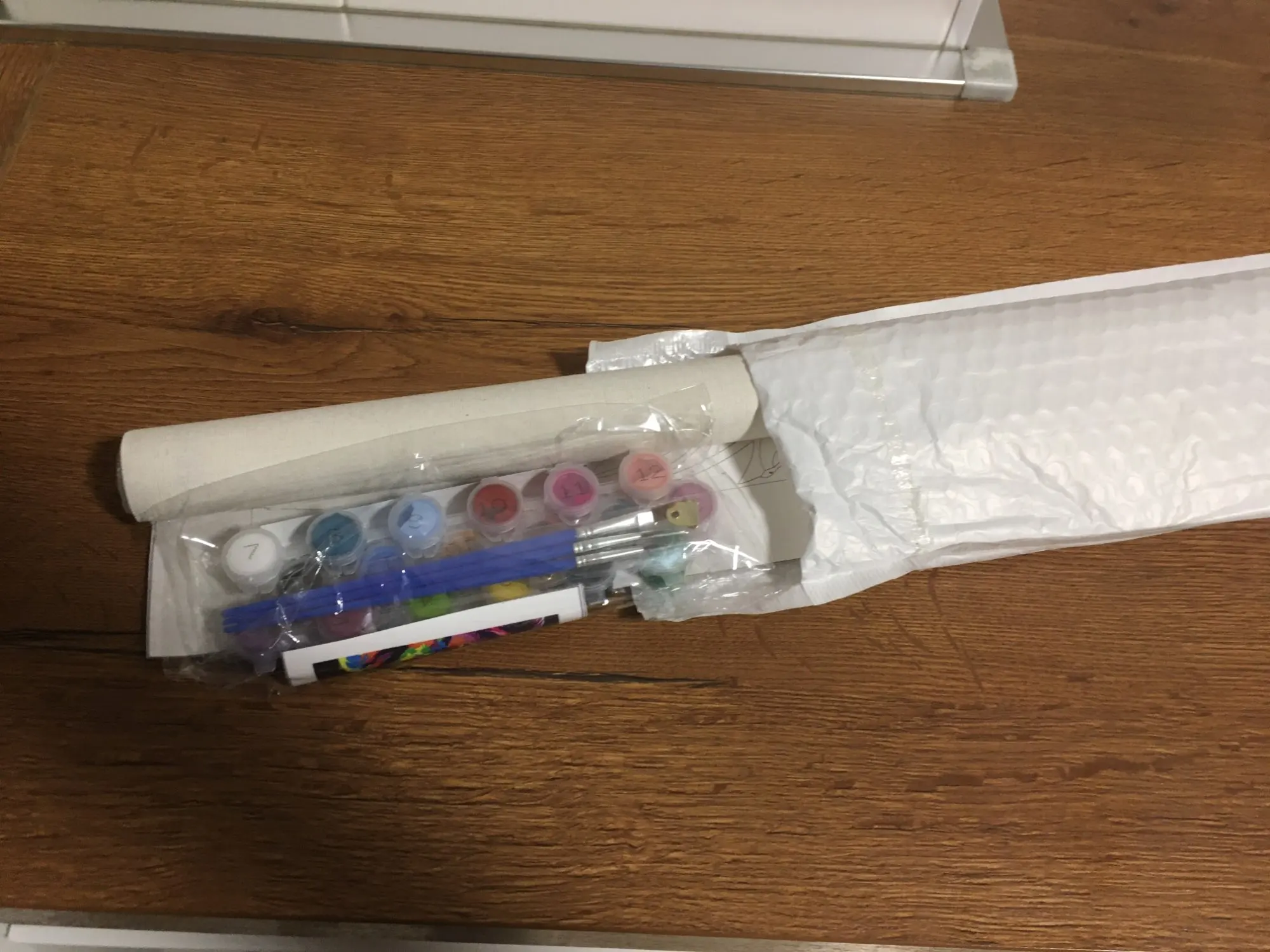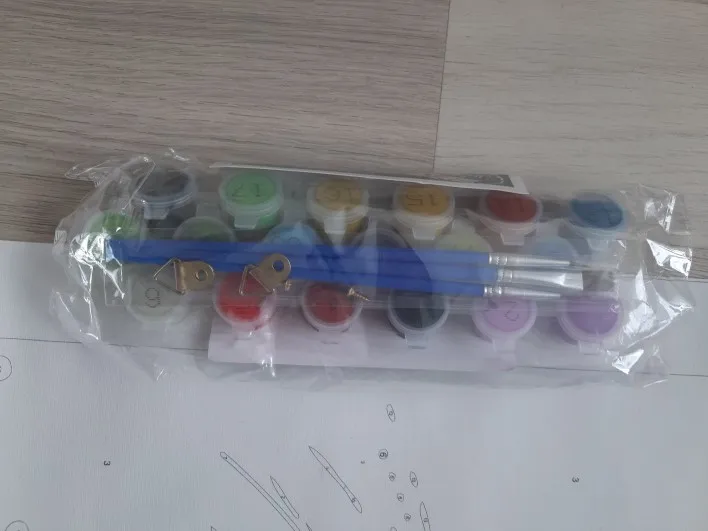 Он прибыл в течение 10 дней! Рисунок кажется хорошим качеством (Я примерил только один цвет для проверки), и кисти тоже выглядят хорошо. Рама-это не лучший деревянный предмет, но цена нормальная. Рад этой покупке. Возможно, куплю снова.
