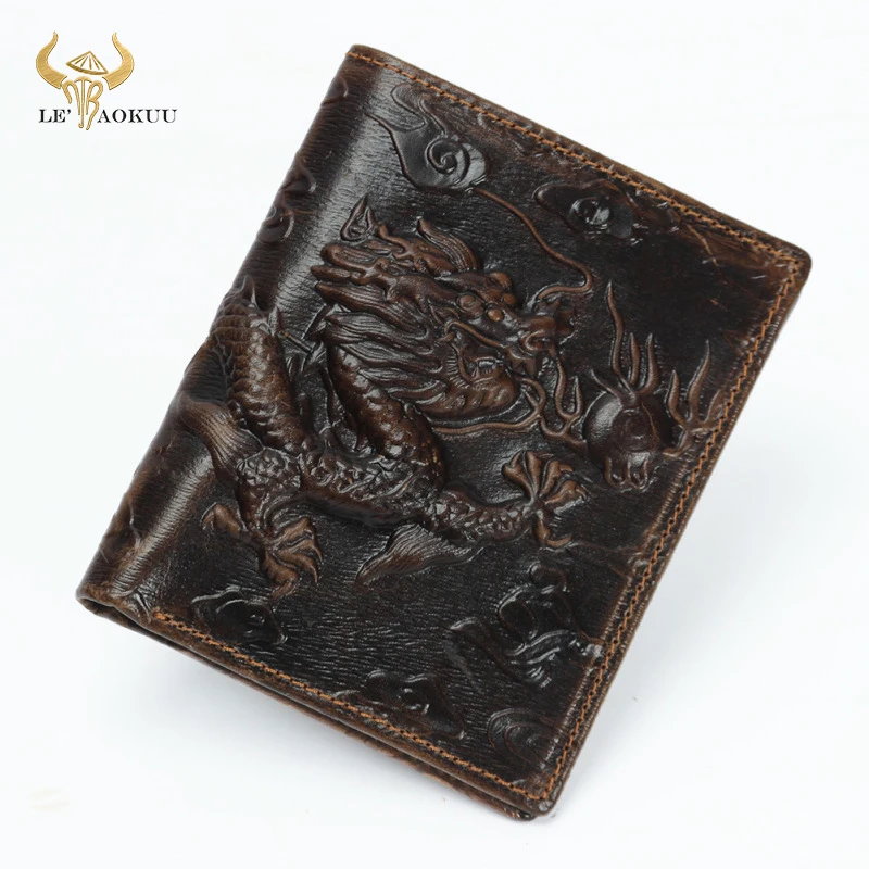 Кошелек мужской кожаный, с тиснением в виде дракона, 1010
