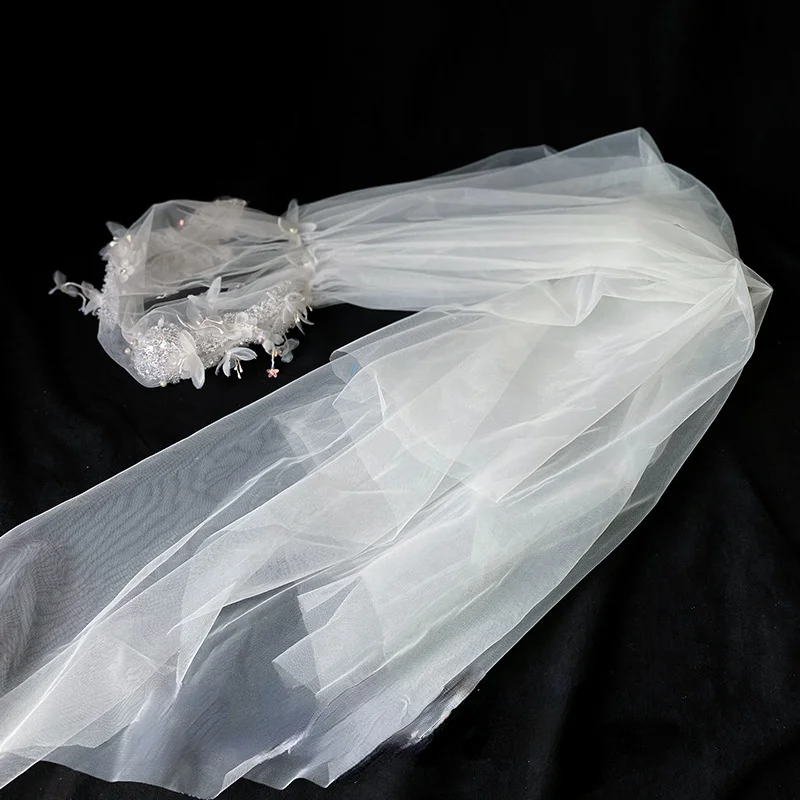 Волшебная кружевная Длинная фата головной убор Красивая Белая марлевая сетка свадебная фата аксессуары для волос