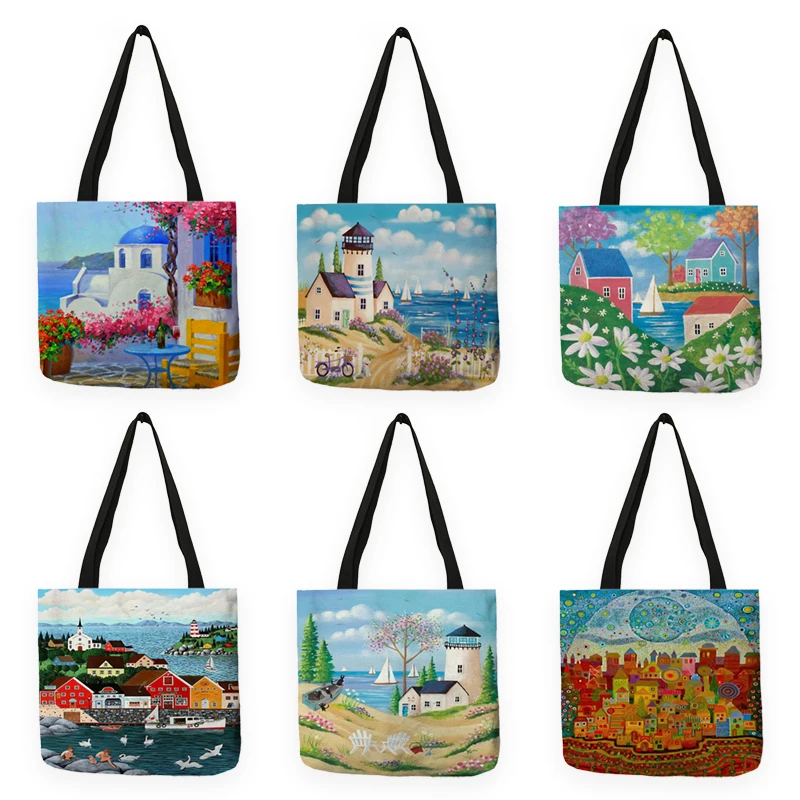 Женская сумка-шоппер, многоразовая, складная, с пейзажным принтом, ...