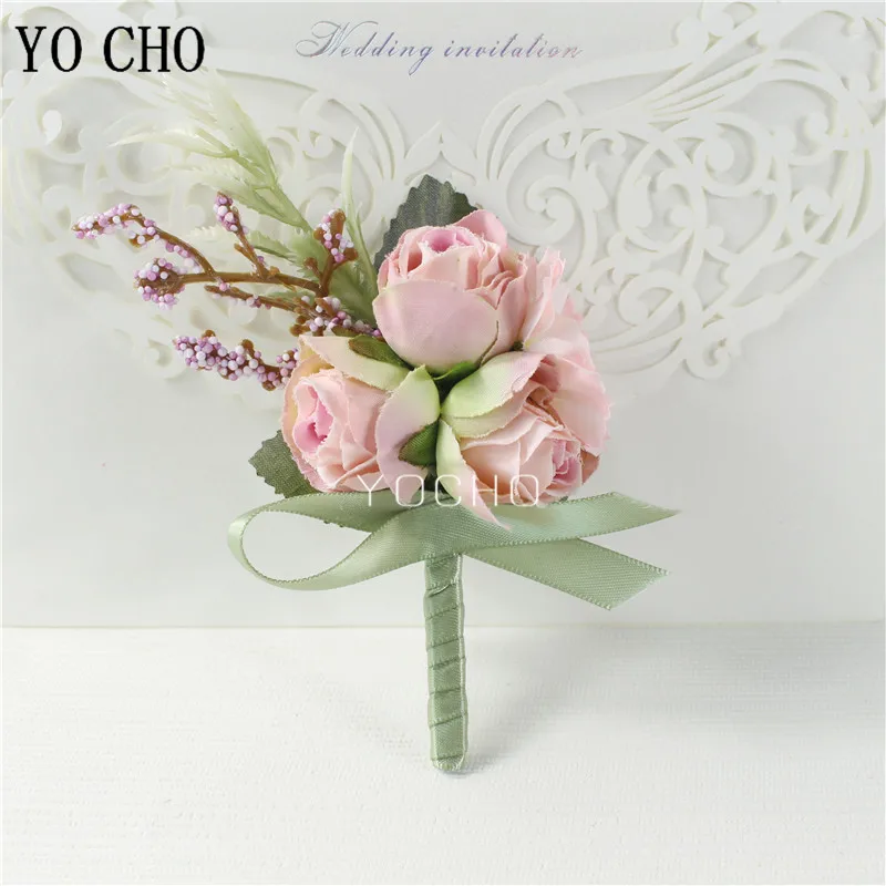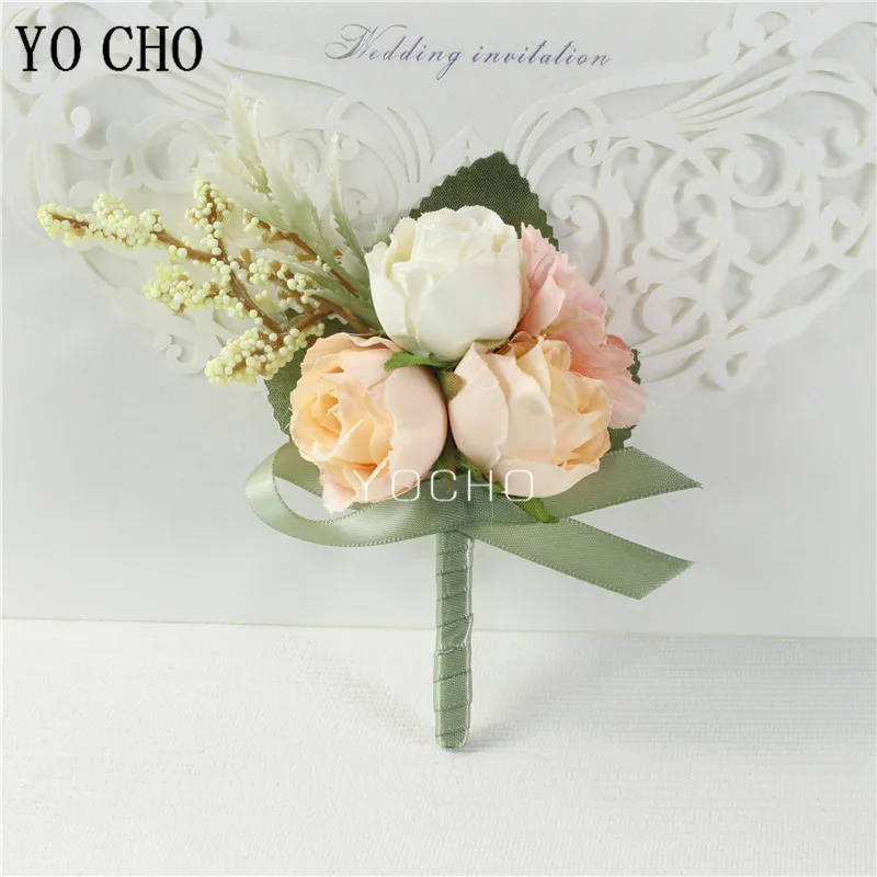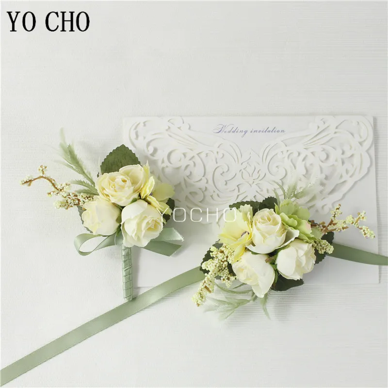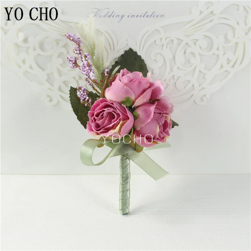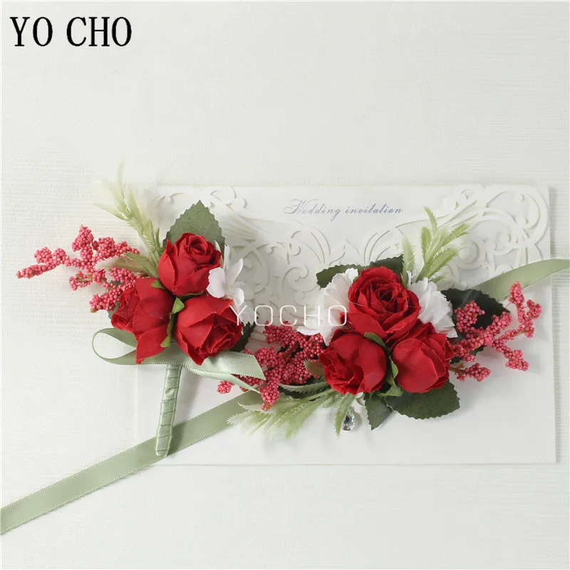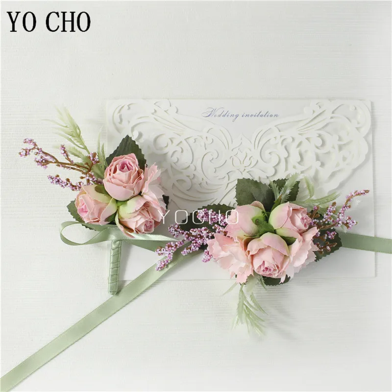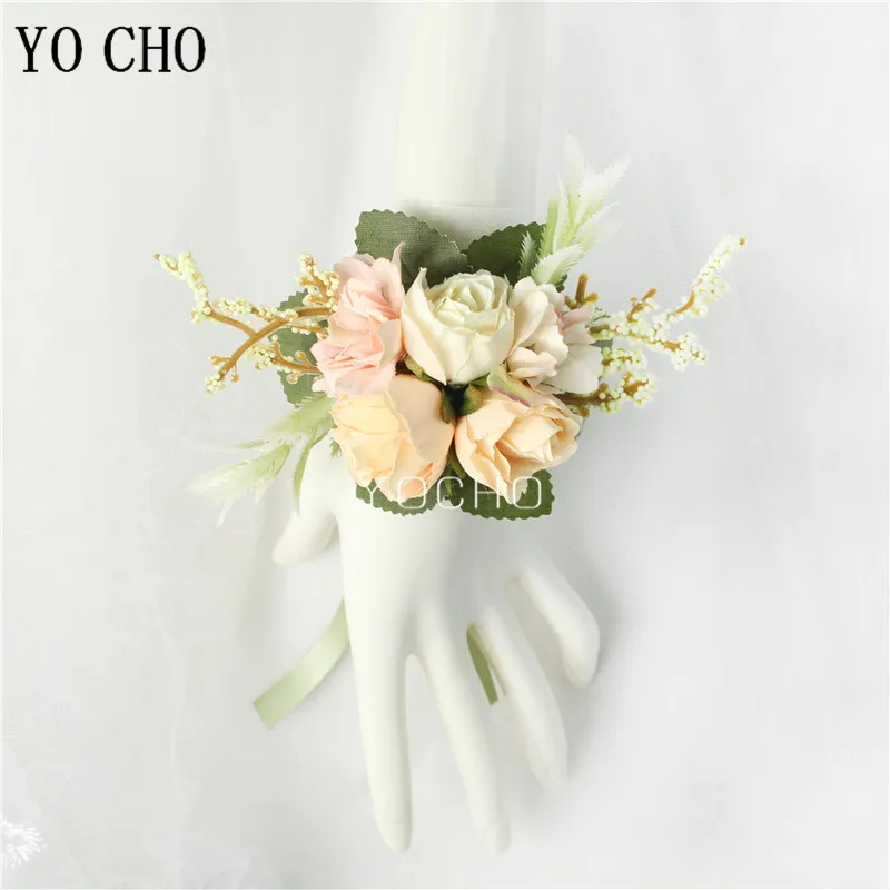 YO CHO бутоньерка на запястье, свадебная бутоньерка из браслет для невесты шелка, розы, для вечеринки, выпускного вечера, для девочек, корсаж на запястье, свадебная бутоньерка
