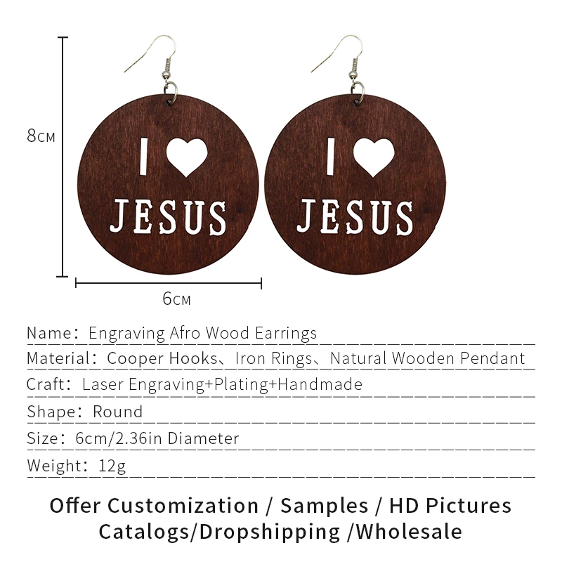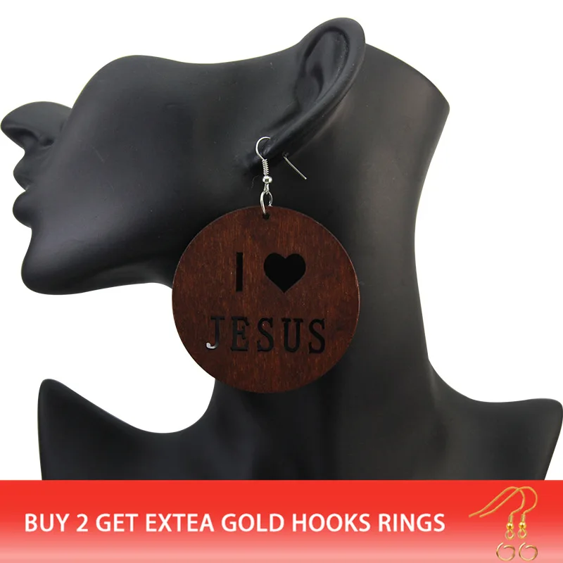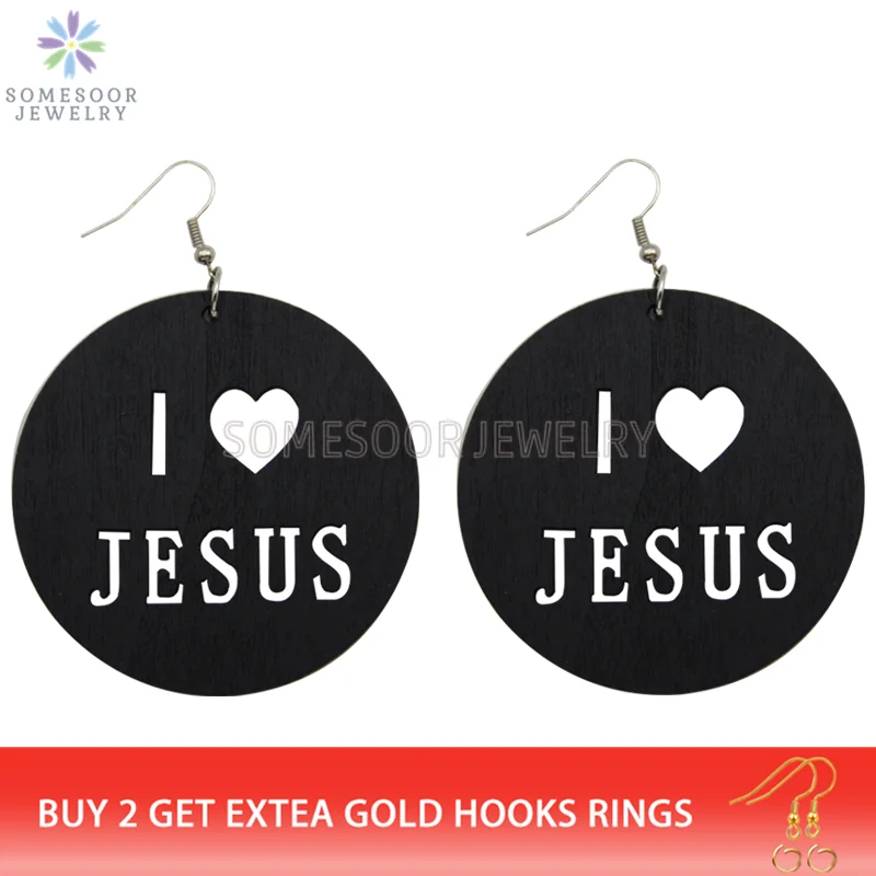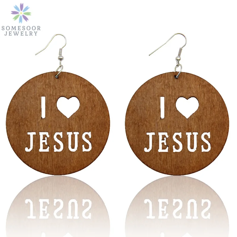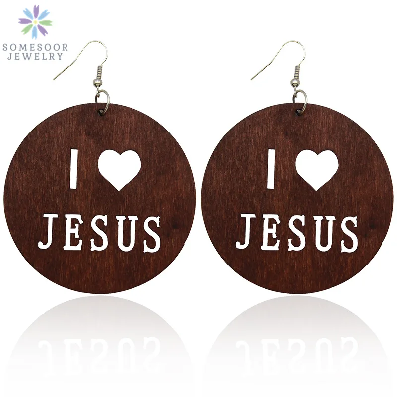 Серьги-подвески SOMESOOR с гравировкой цвета коричневого кофе Я люблю Иисуса, деревянные серьги из натурального дерева, 6 см, большие размеры, подарки для христианских женщин