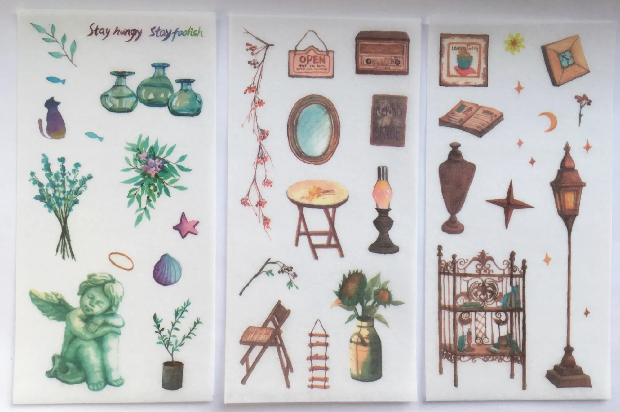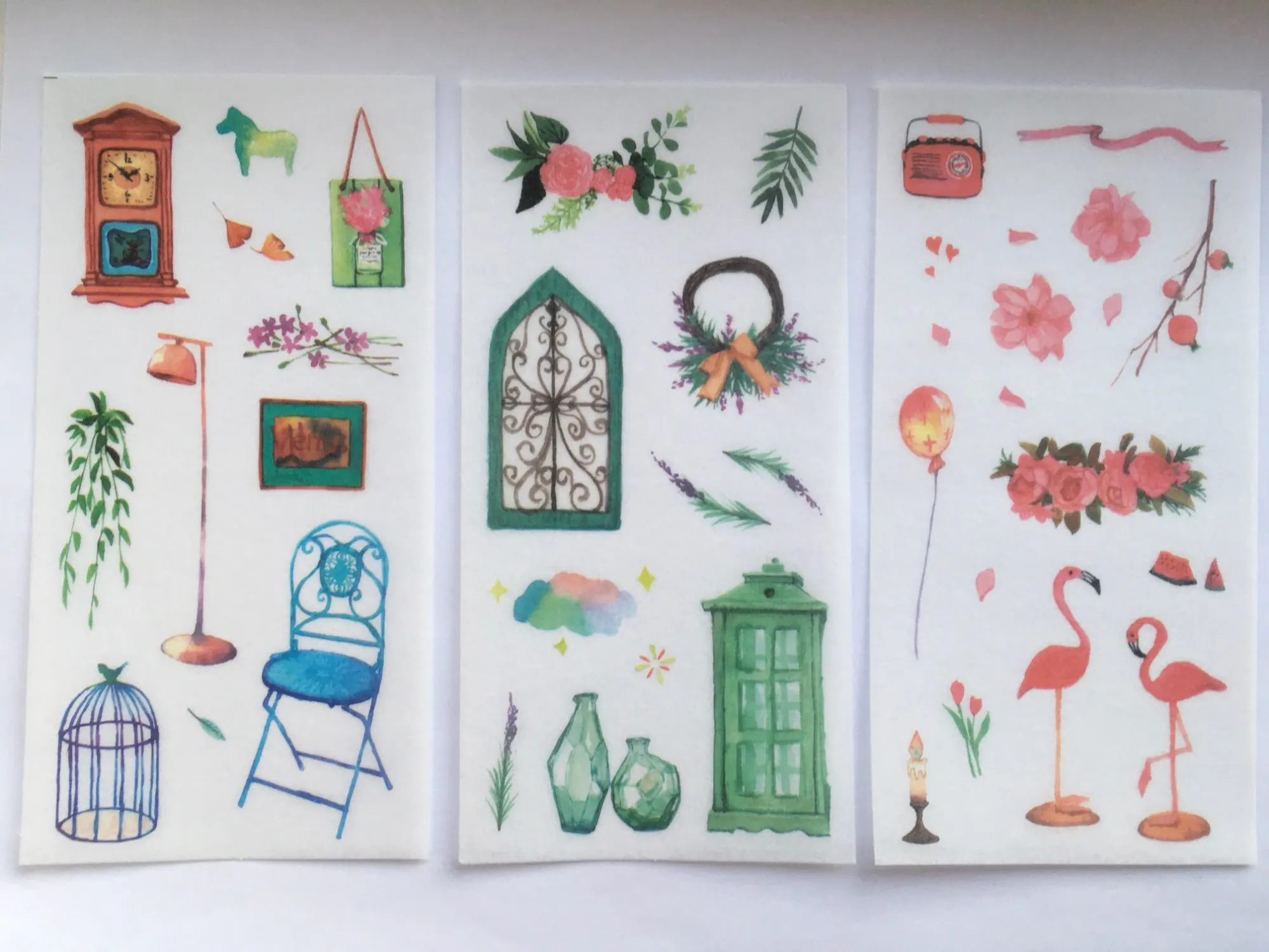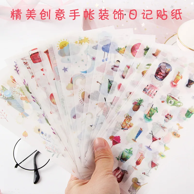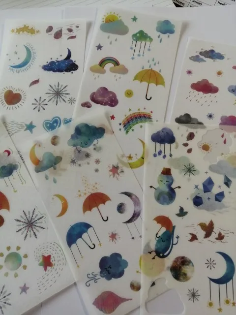 Очень красивые наклейки на бумажной основе, будто акварелью накрашены (6 листов). Однозначно советую