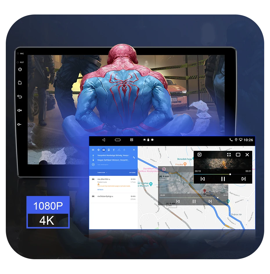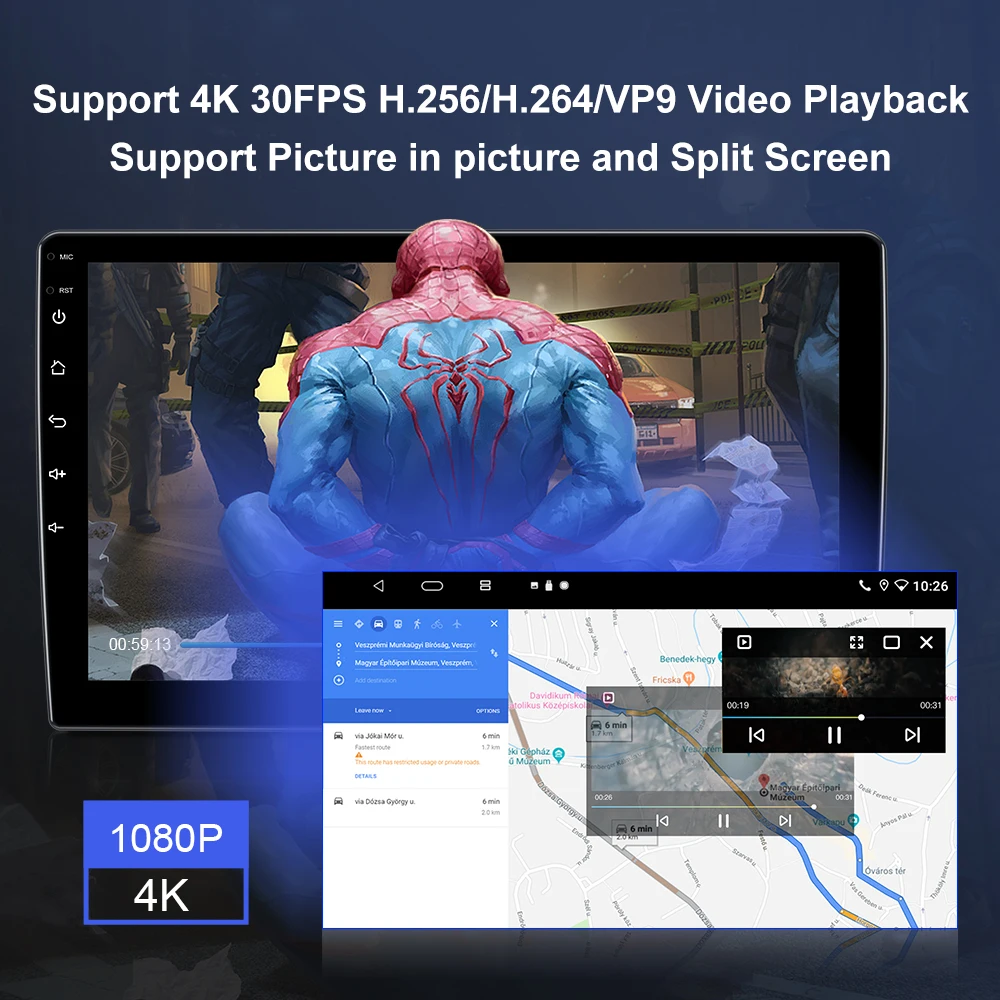 1. Поддерживает воспроизведение видео 4K 30FPS H.256 / H.264 / VP. Видео более четкое.2. Поддерживает изображение в картинке. Больше безопасности и удобства во время вождения.