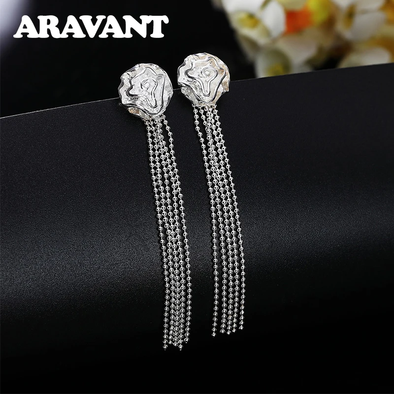 Серебряные серьги-подвески с длинной цепочкой из 925 бусин и кисточкой для женщин в Корейском стиле, модные серьги с подвесками в виде роз, ювелирные изделия, подарки