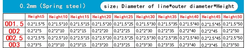 Диаметр проволоки: 0,2 мм (размер: диаметр проволоки * Внешний диаметр * высота, единицы измерения: мм)