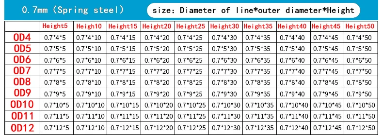Диаметр проволоки: 0,7 мм (размер: диаметр проволоки * Внешний диаметр * высота, единицы измерения: мм)